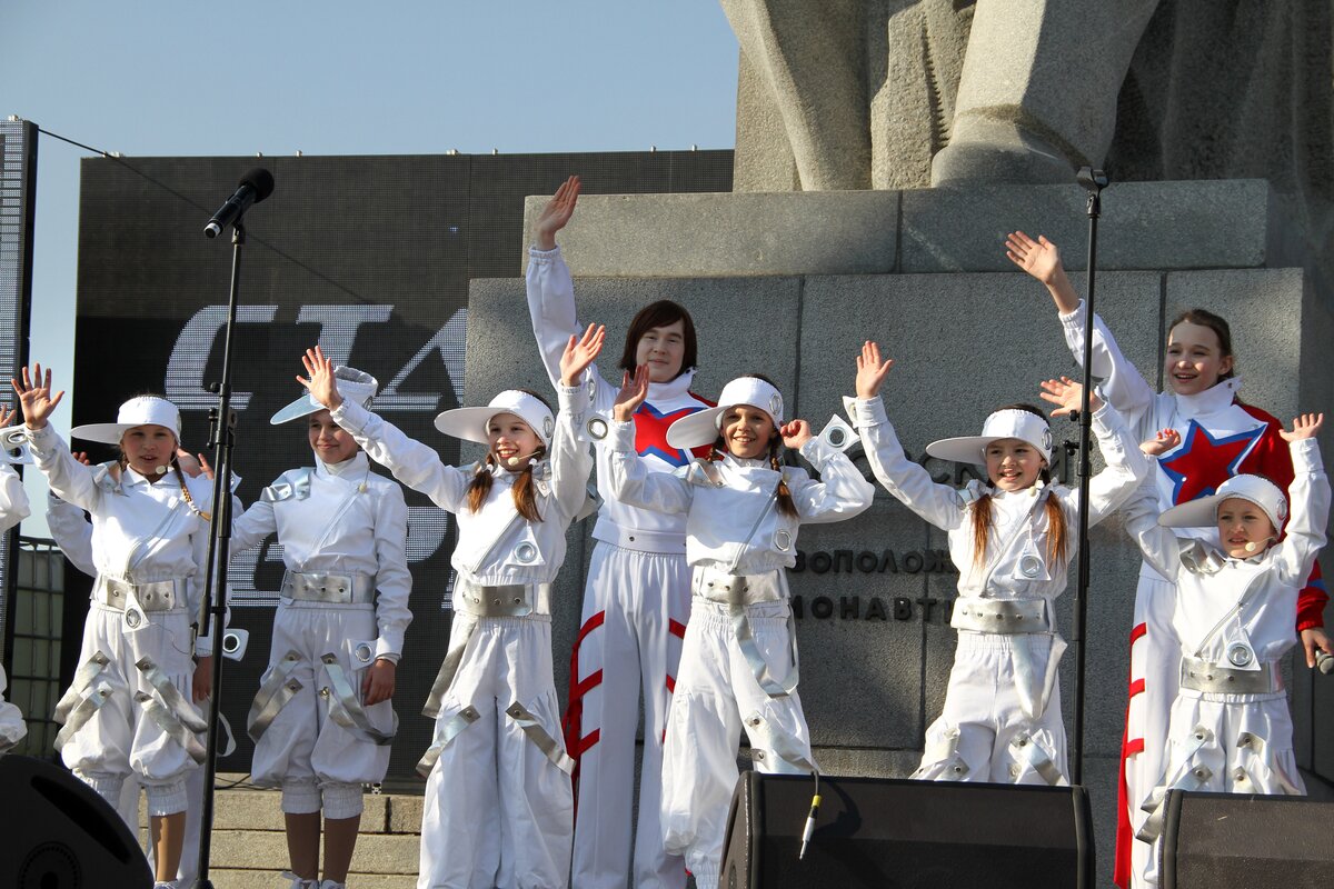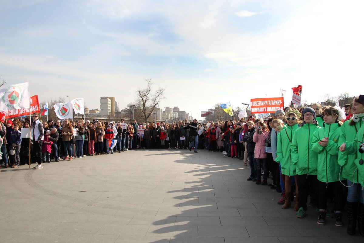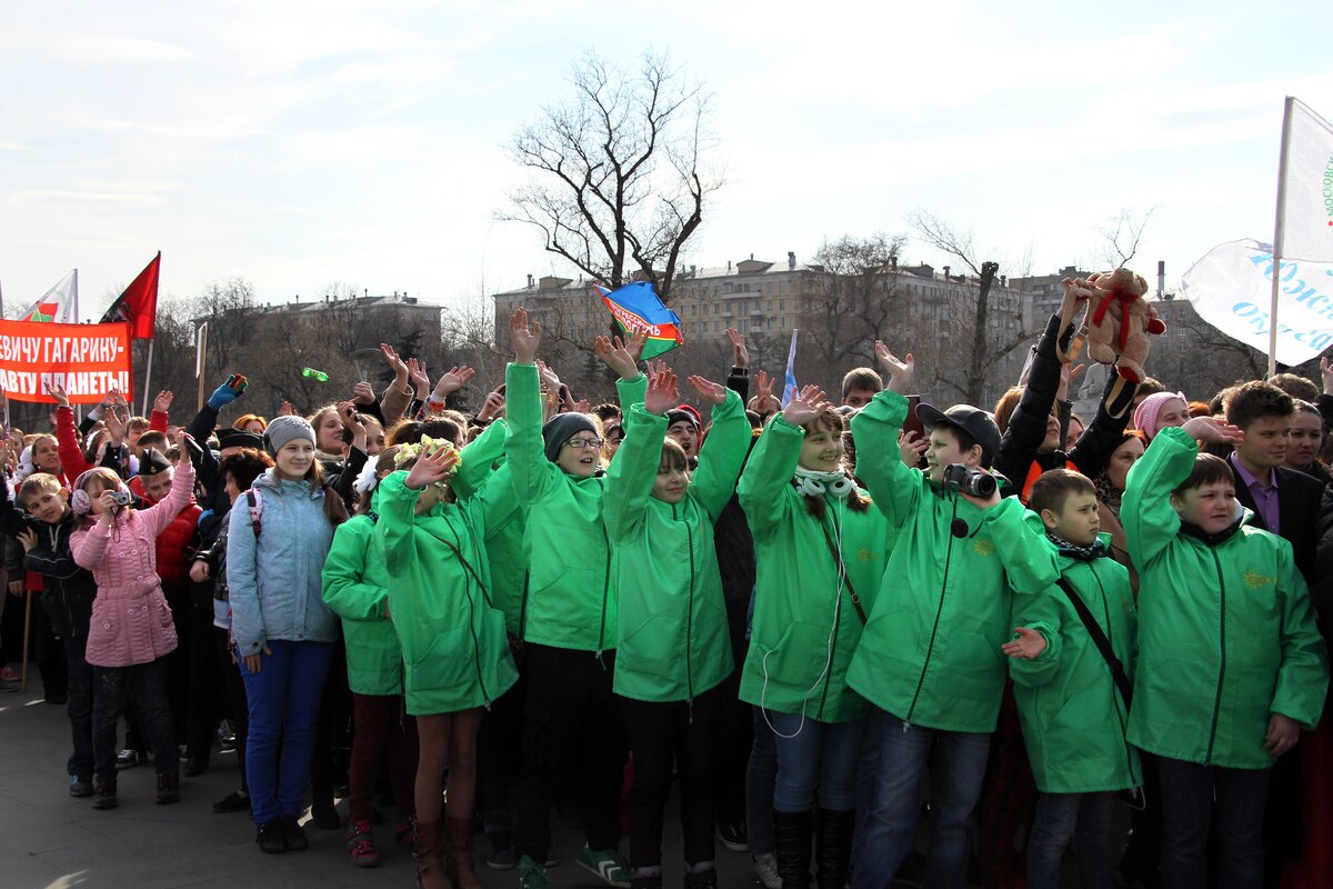 В День космонавтики в Москве состоялась молодежная патриотическая акция "Стань первым!". В этот день более 4 активистов детских и молодежных объединений стали экипажем огромного виртуального космического корабля "Россия".