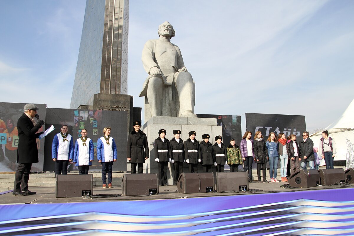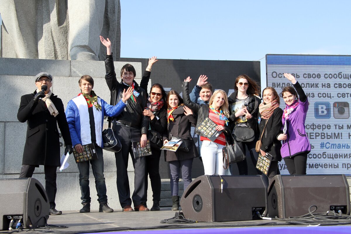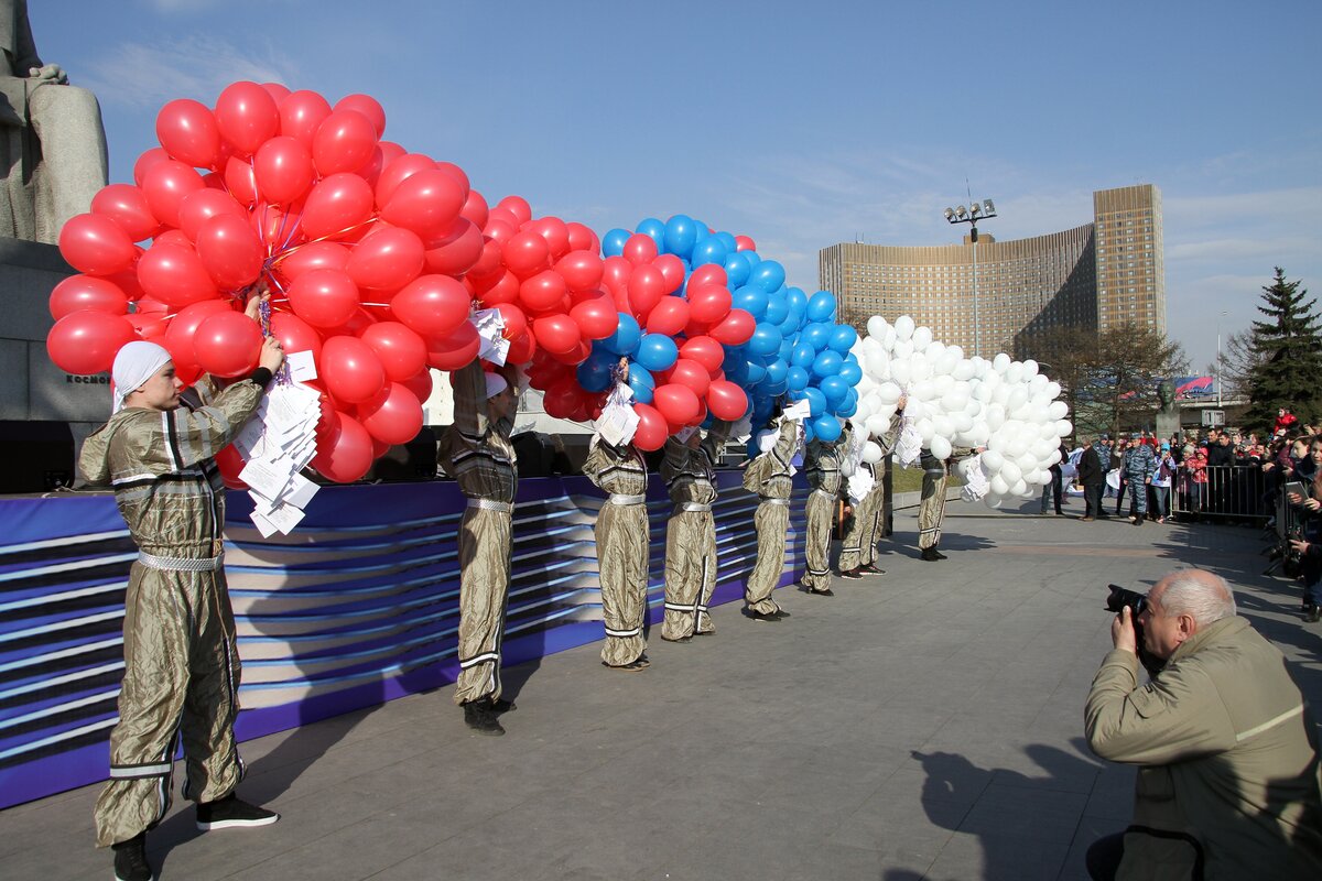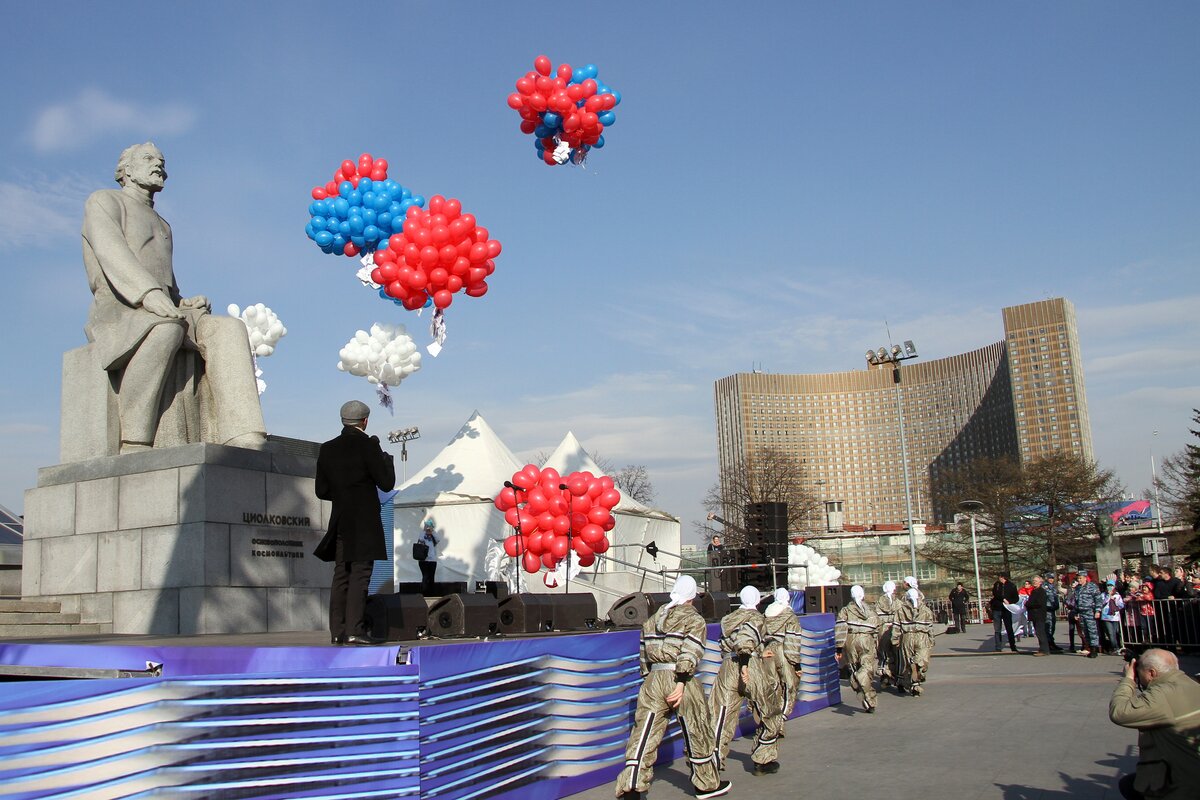 В День космонавтики в Москве состоялась молодежная патриотическая акция "Стань первым!". В этот день более 4 активистов детских и молодежных объединений стали экипажем огромного виртуального космического корабля "Россия".