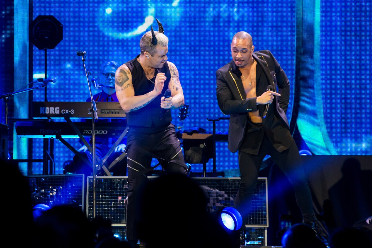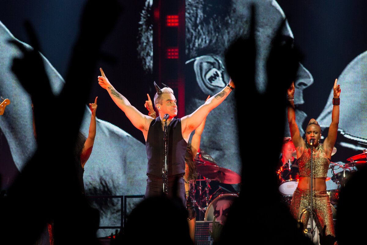 В "Олимпийском" 12 апреля прошел концерт Робби Уильямса. Певец выступил в Москве в рамках мирового тура Let Me Entertain You и исполнил свои лучшие песни.