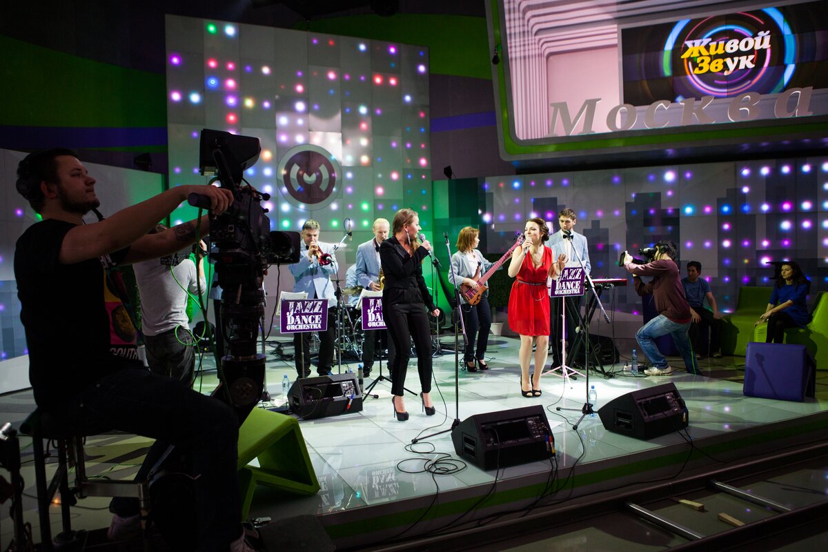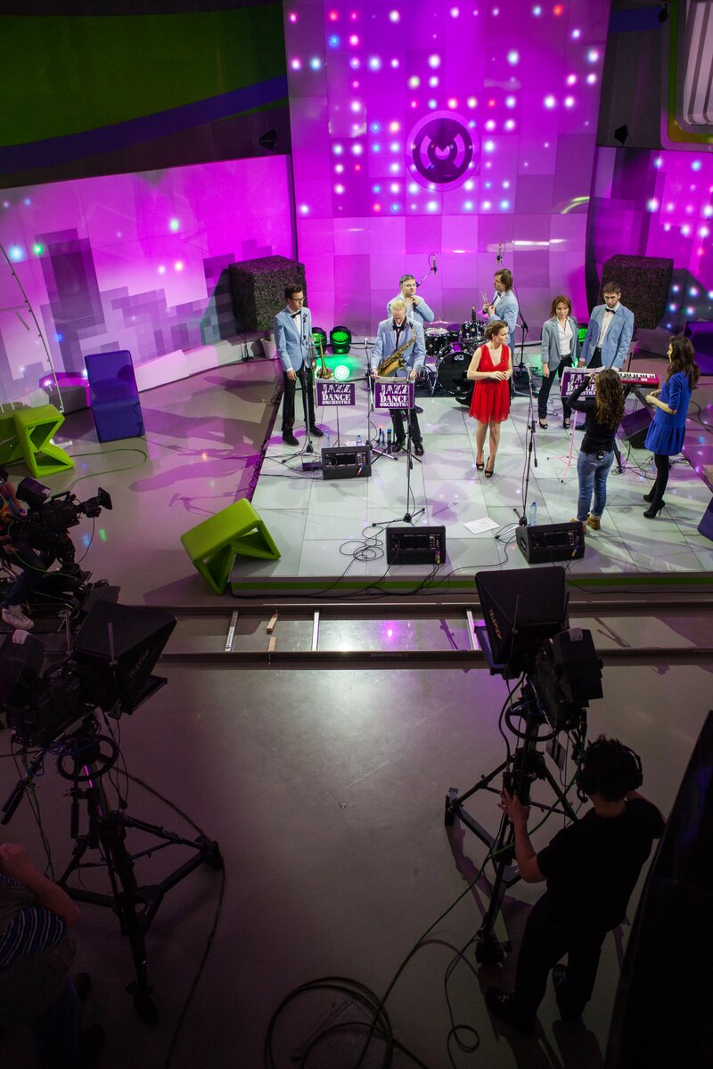 Программа "Живой звук" выходит на канале "Москва 24" ежедневно по пятницам в 19:30. Для тех, кто мечтал узнать, как записывается программа, мы подготовили фотоотчет с записи программы с участием Jazz Dance Orchestra и Полины Зизак.