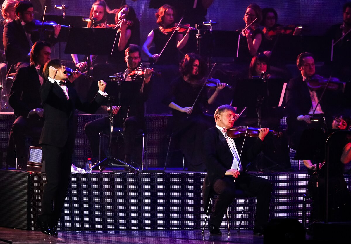 В Кремлевском Дворце с полным аншлагом прошли концерты группы "Би-2" совместно с симфоническим оркестром Москвы "Русская филармония".