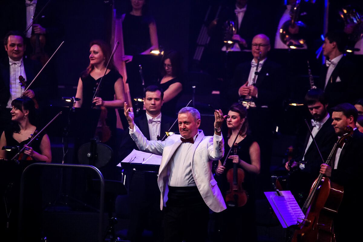 Дирижер и руководитель оркестра Феликс Арановский не только виртуозно управлял оркестром, но и взывал к овациям зала для приглашения артистов на бис.