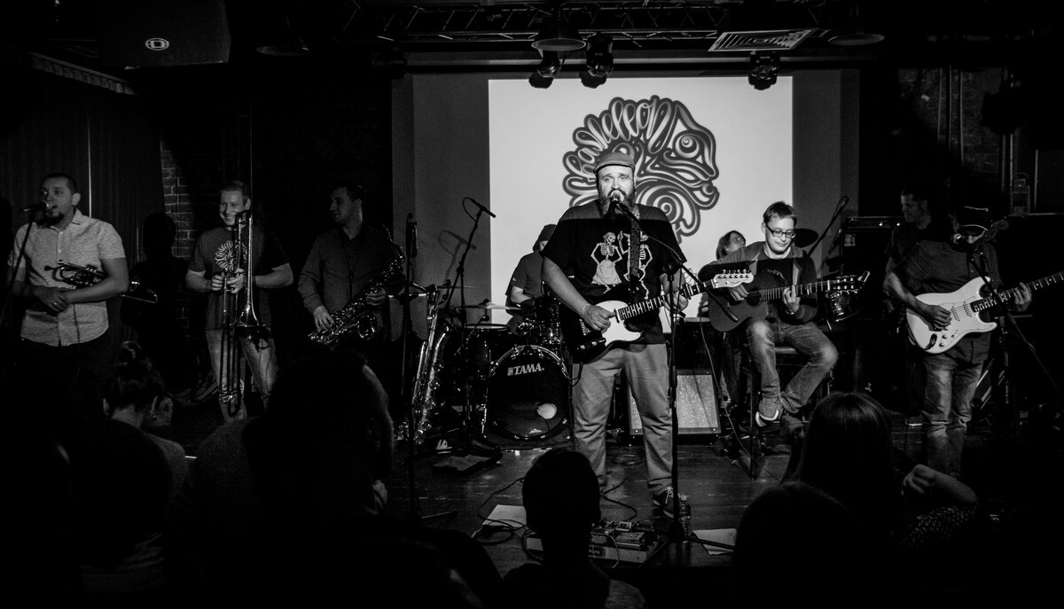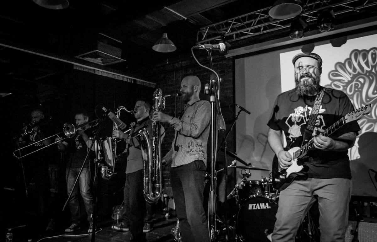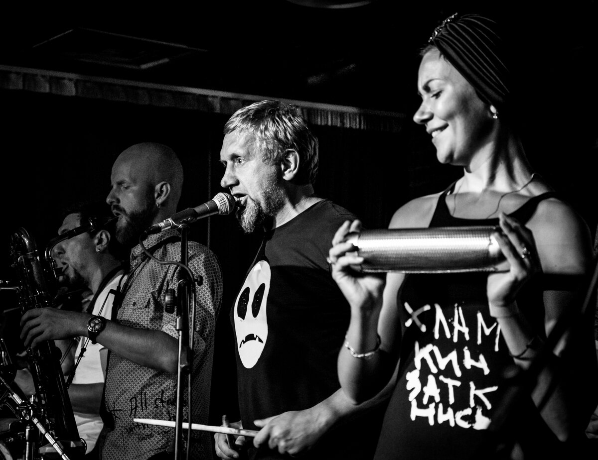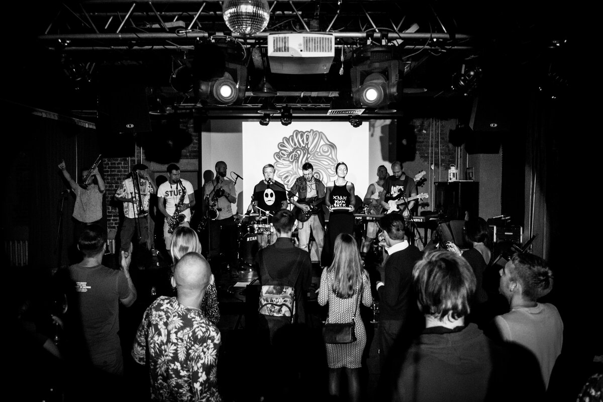 24 сентября в клубе Fassbinder питерская группа Markscheider kunst представила свой новый альбом "Хамелеон". Гостями "маркшейдеров" стали группа Карл Хламкин и его "ДавайЗабухаемОркестр".