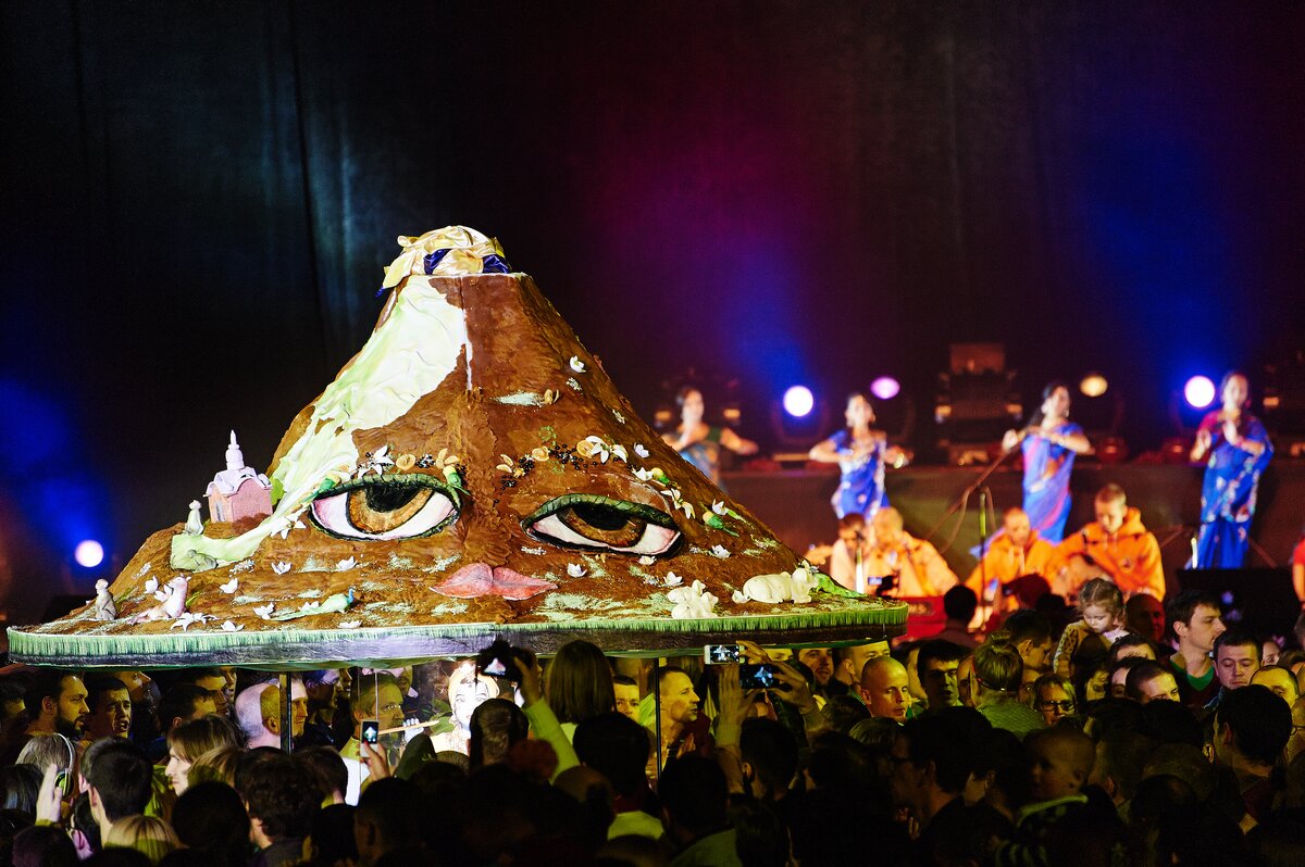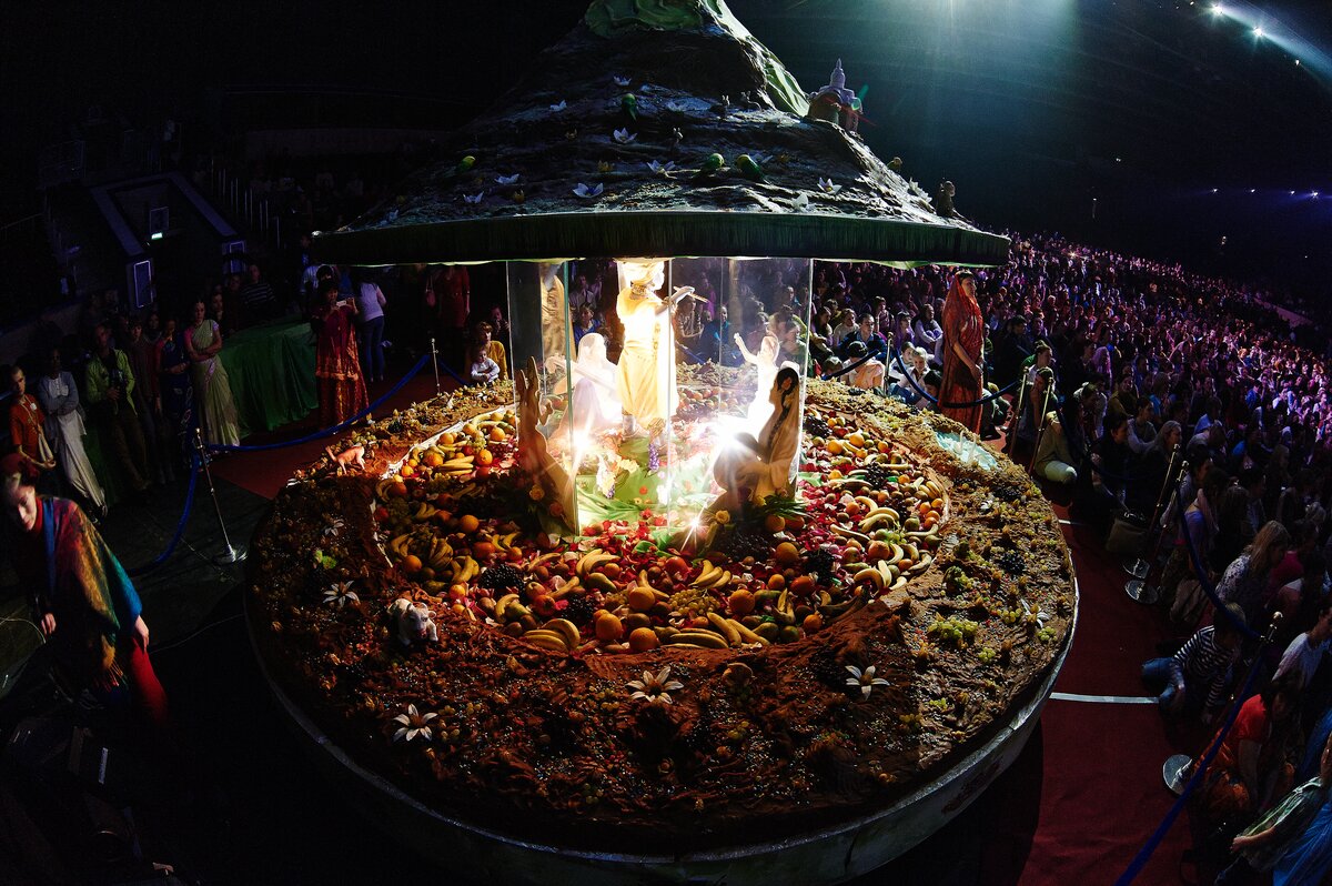 В концертном зале "Россия" в Лужниках прошел фестиваль индийской культуры "Праздник Сладкой Горы". В рамках праздника гостям мероприятия показали гору из сладостей весом в полторы тонны. Перед гостями выступили французский певец Пьер Эдель, певица Гаурачандрики, а затем свое мастерство продемонстрировали индийские танцоры.
