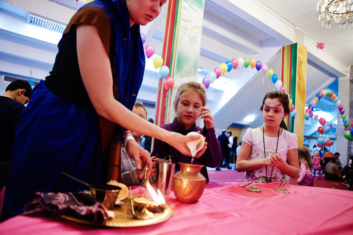 Все желающие могли погрузиться в мир ведической астрологии и хиромантии, а также отведать индийские лакомства.