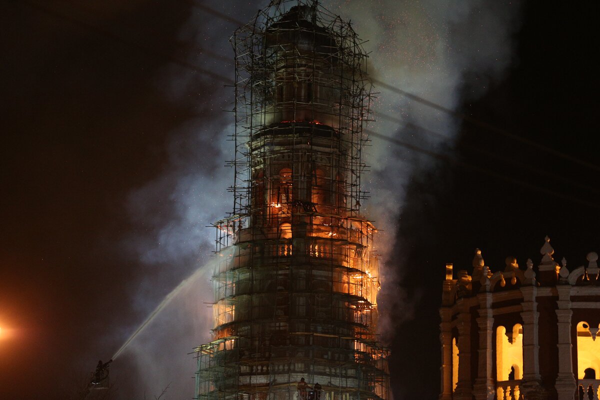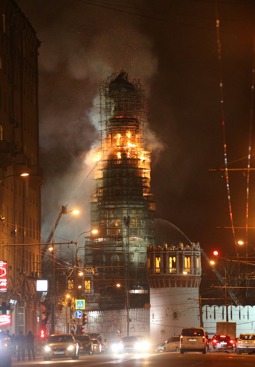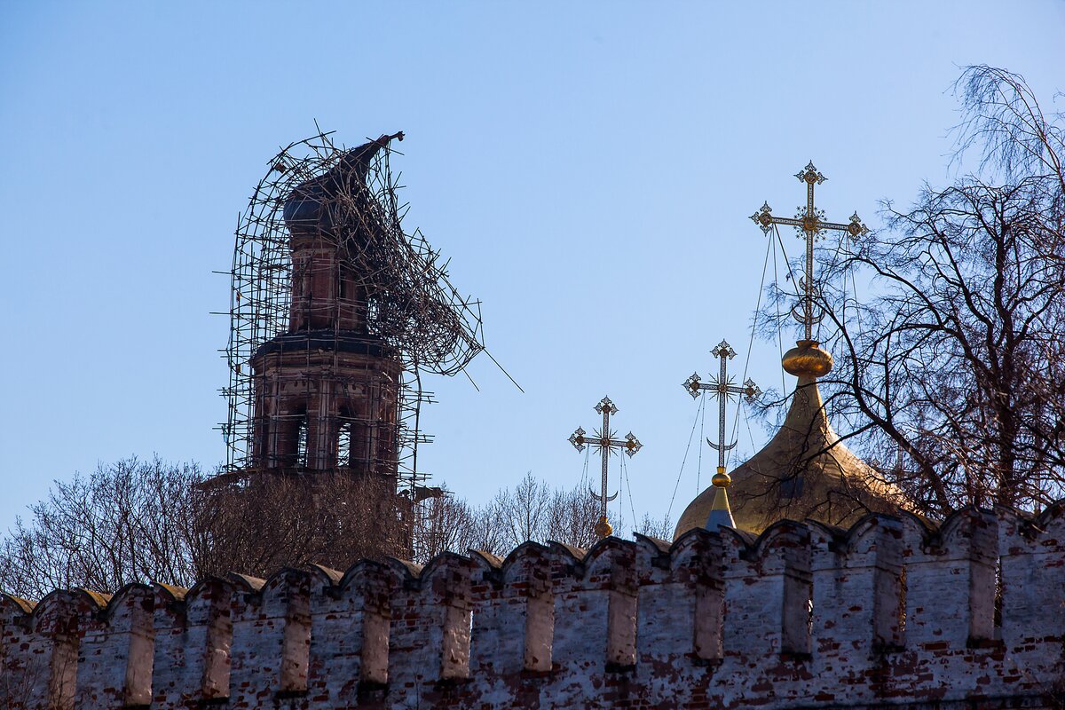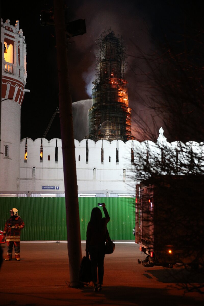 На территории Новодевичьего монастыря вечером 15 марта произошел пожар. Возгорание возникло на колокольне, которая находится на реставрации.