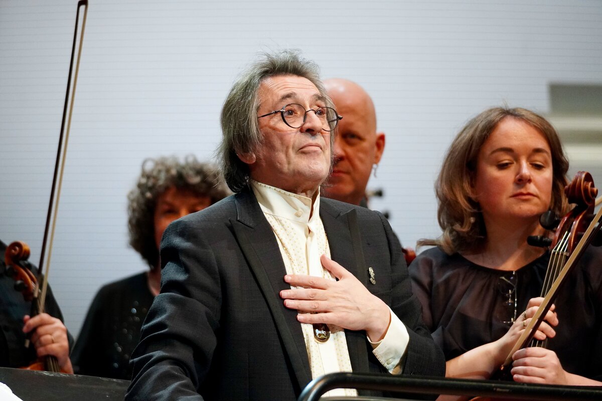 Открыла концерт сюита "Путеводитель по оркестру" современного композитора Кузьмы Бодрова. Также состоялась мировая премьера "Симфонии для струнных и ударных" Георгия Свиридова, 110-летие которого музыкальный мир отмечает в 2025 году. Завершился вечер Пятой симфонией Чайковского.