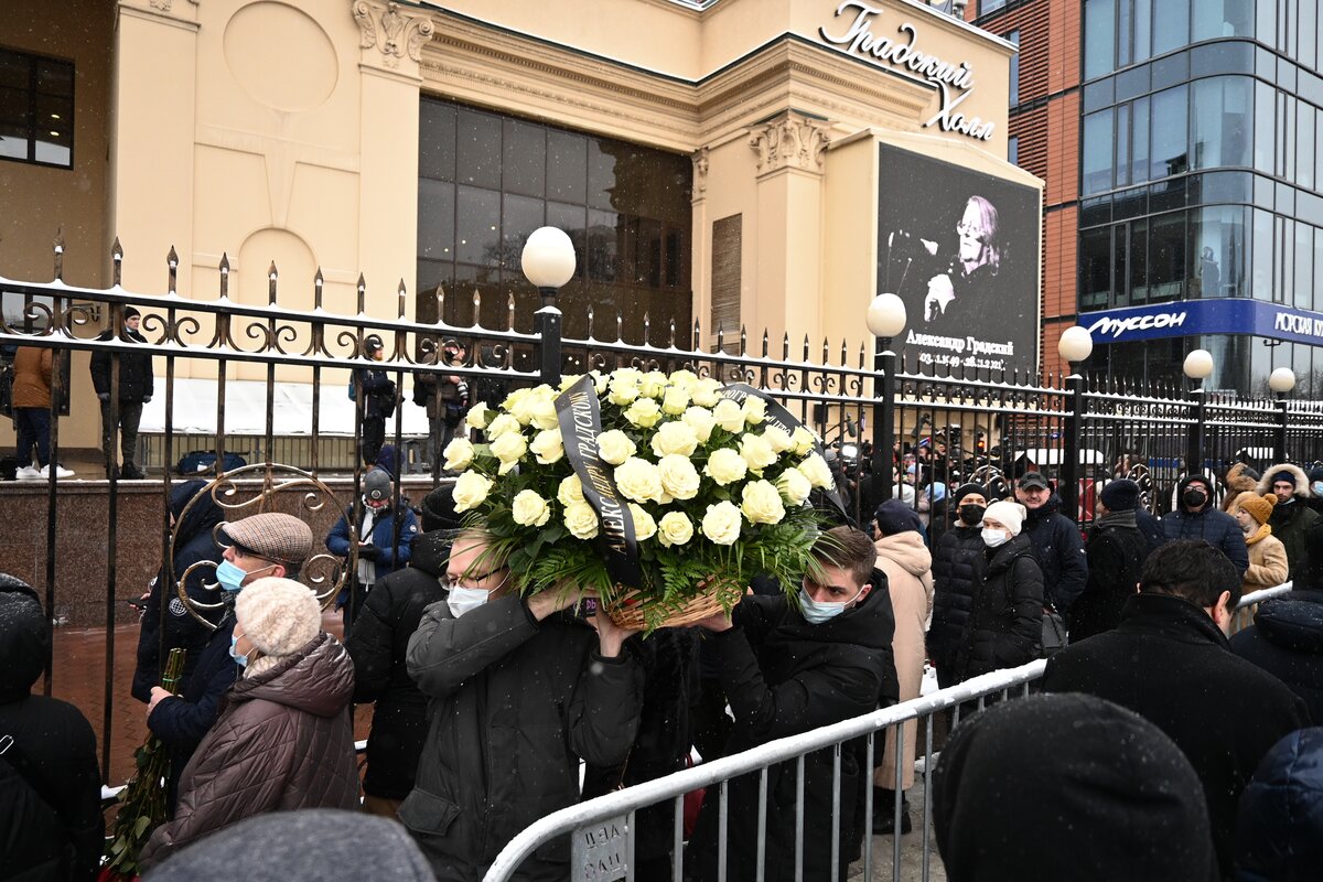 В театре "Градский Холл" состоялась церемония прощания с певцом и композитором Александром Градским. Проводить музыканта в последний путь пришли его родные и близкие, а также поклонники, коллеги и ученики.