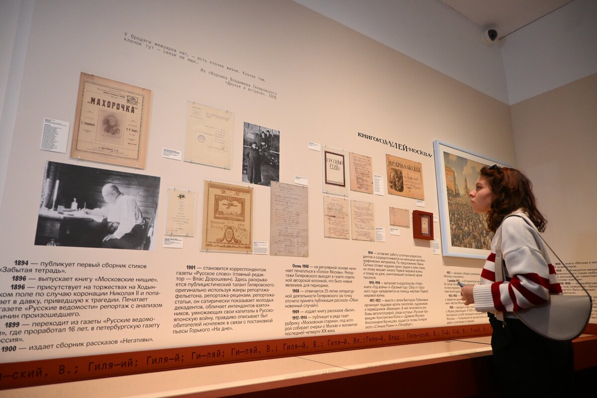 На выставке "Линии Гиляровского" представлены этюды, эскизы и зарисовки, выпуски газет под редактурой писателя, его стихотворения, письма и многое другое. Посетители смогут увидеть редкие фотографии, сюжеты которых журналист описывал в своих очерках.