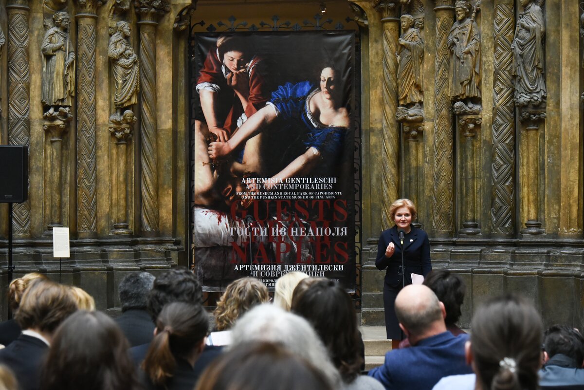 Вступительное слово также сказала куратор выставки "Гости из Неаполя. Артемизия Джентилески и современники" Виктория Маркова 5/14Вступительное слово также сказала куратор выставки "Гости из Неаполя. Артемизия Джентилески и современники" Виктория Маркова