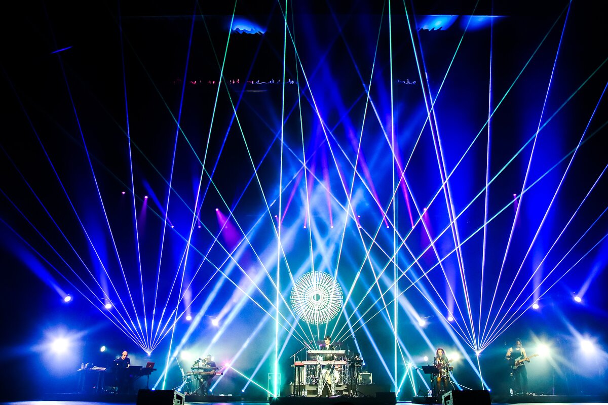 Легенды мировой электронной музыки привезли полноценное стадионное лазерное шоу.