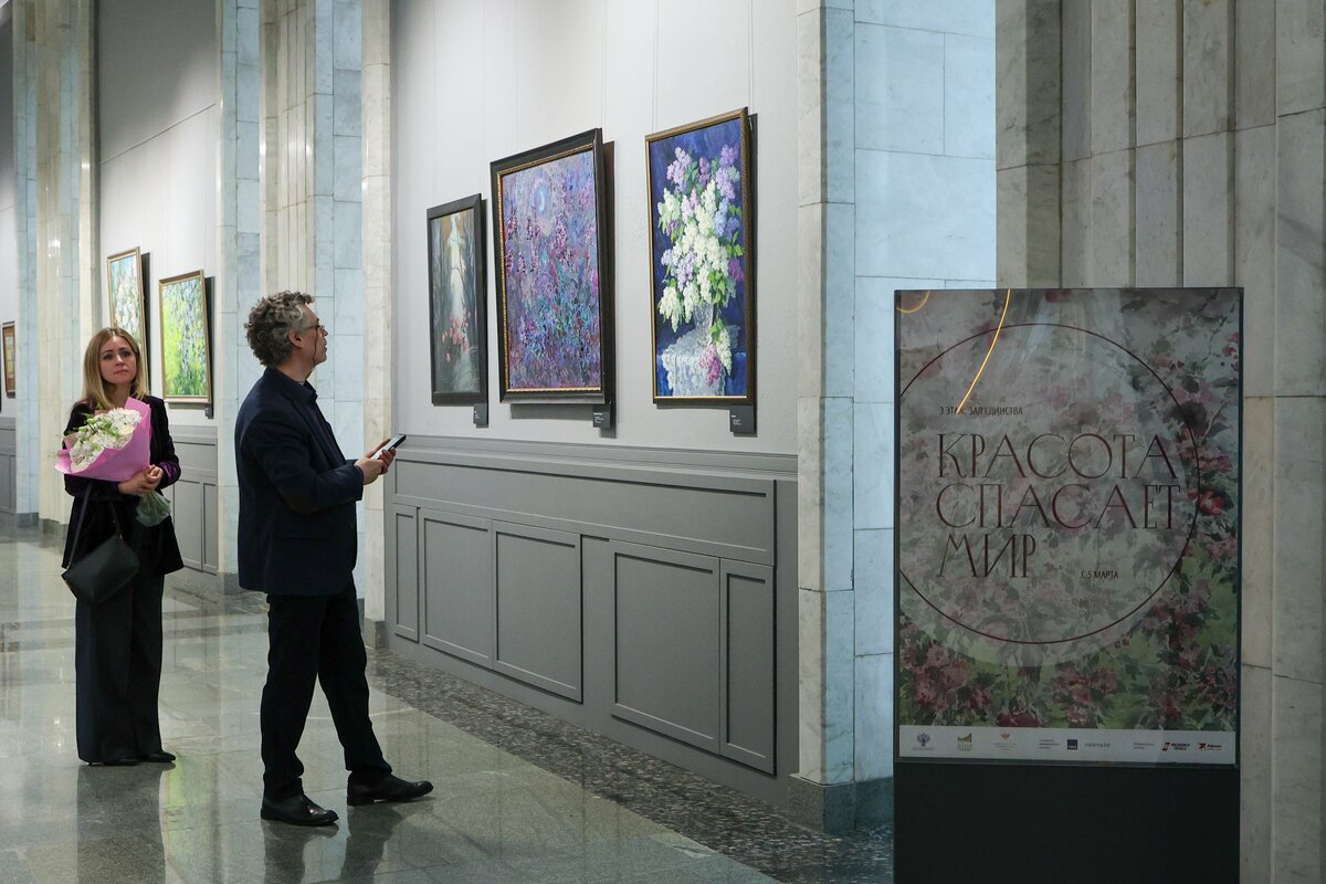 Художественный проект "Красота спасает мир" открылся в столичном Музее Победы к Международному женскому дню. Выставка посвящена цветам.