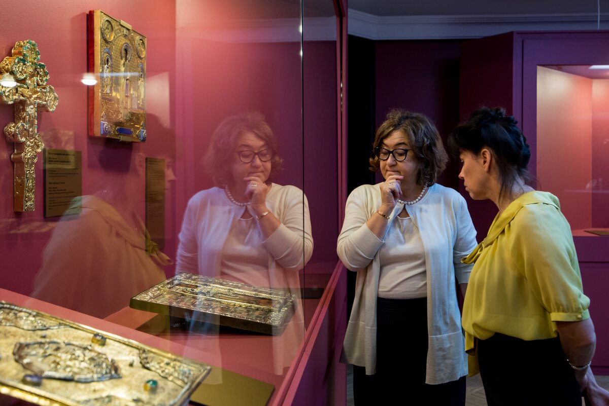 Директор Третьяковской галереи Зельфира Трегулова перед витриной со старинными московскими иконами 5/15Директор Третьяковской галереи Зельфира Трегулова перед витриной со старинными московскими иконами