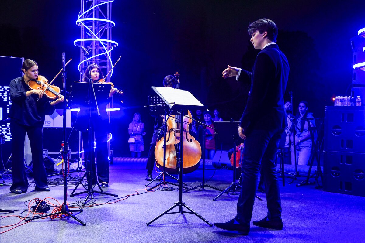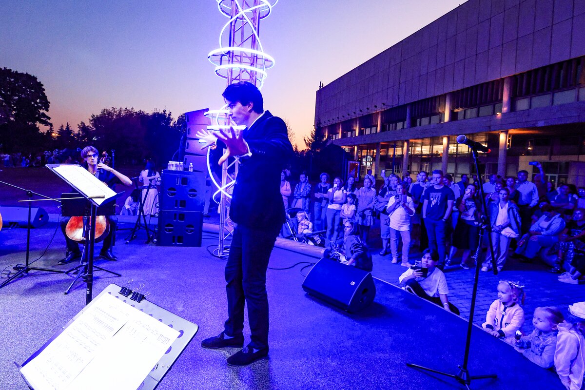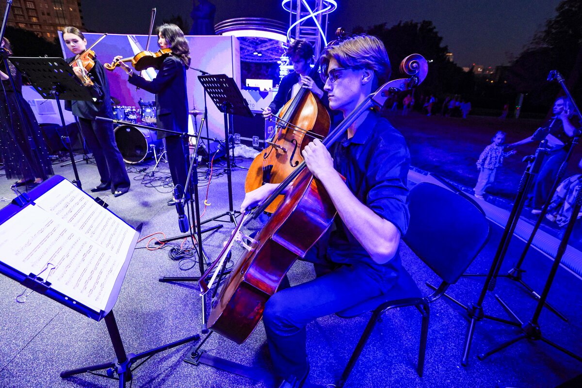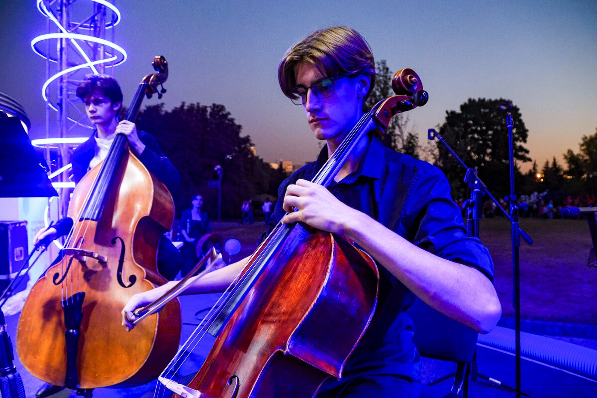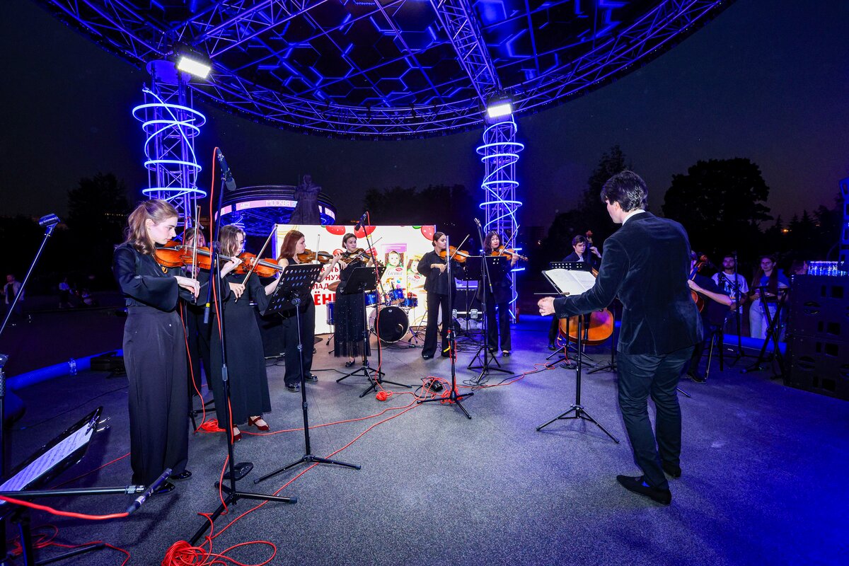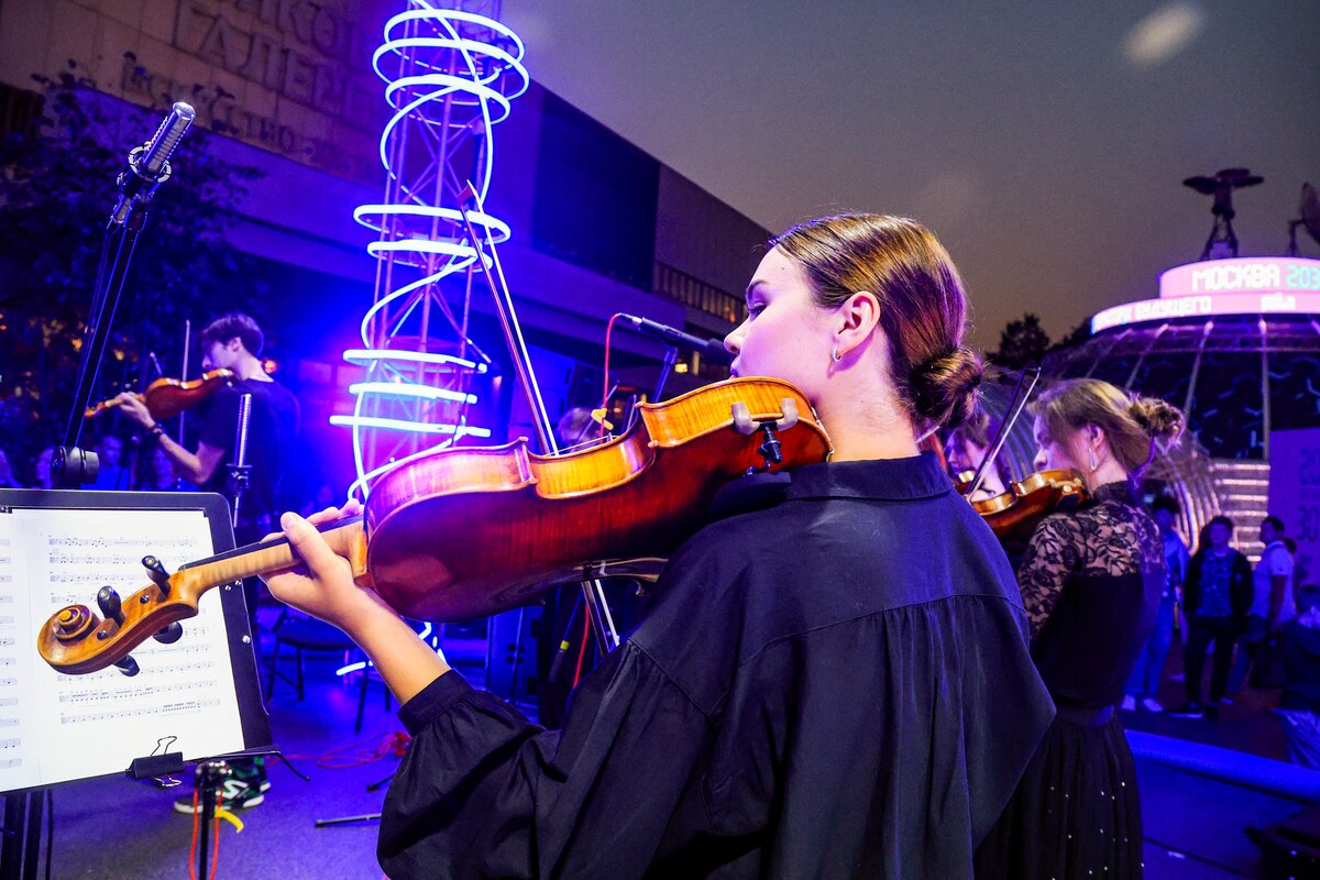 7 сентября в День города телеканал Москва 24 представил концерт в парке искусств "Музеон". Камерный оркестр студентов Московской консерватории "Околобаха" исполнил произведения различных эпох.