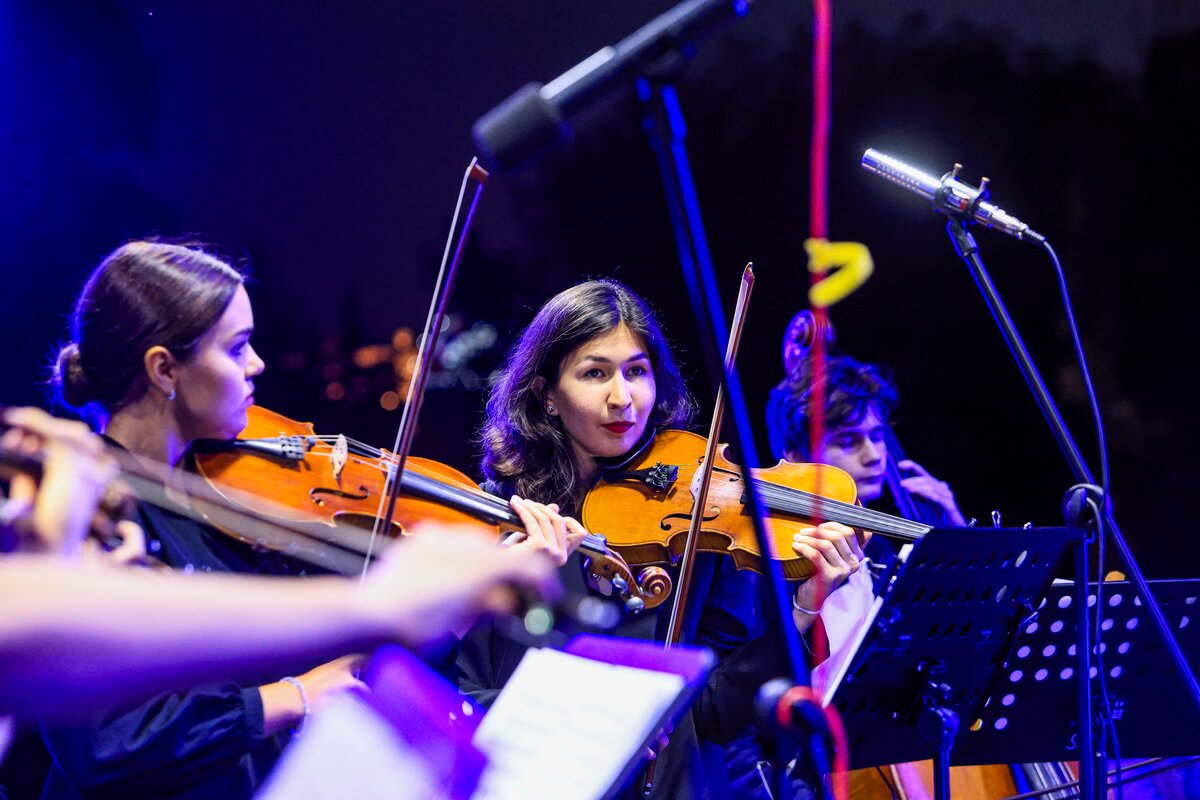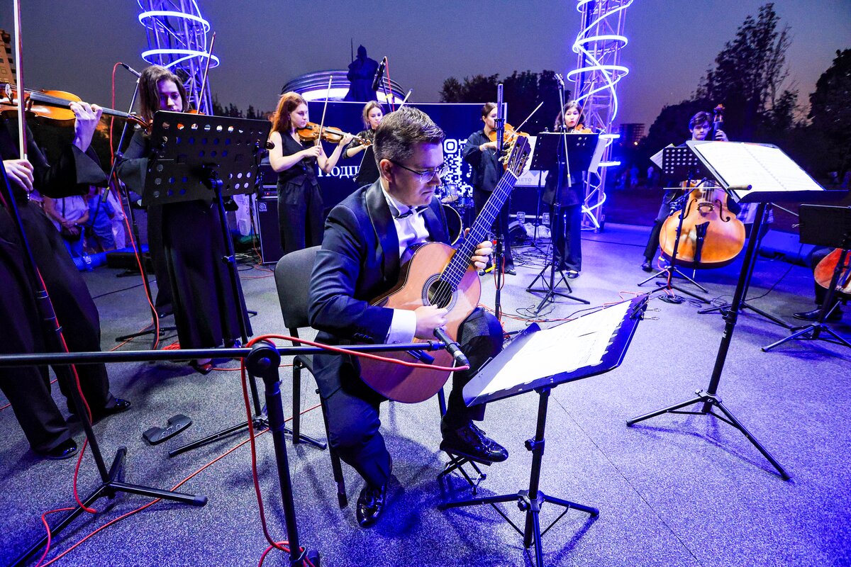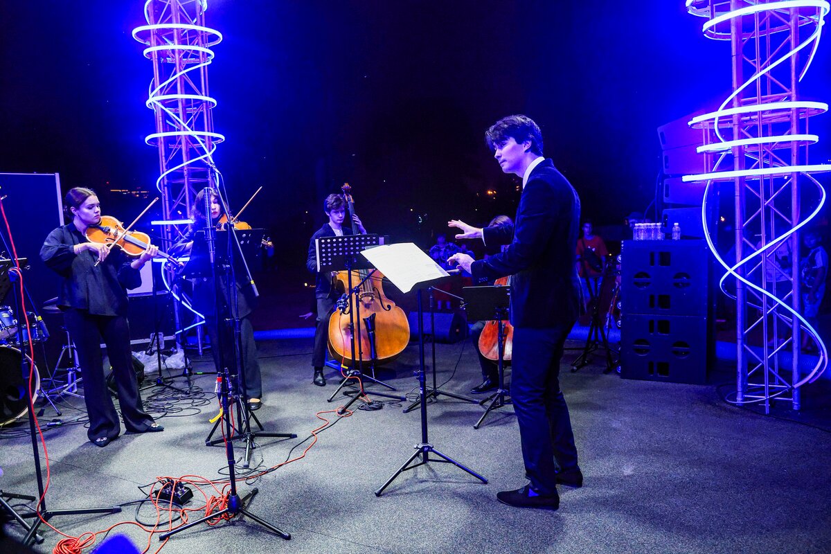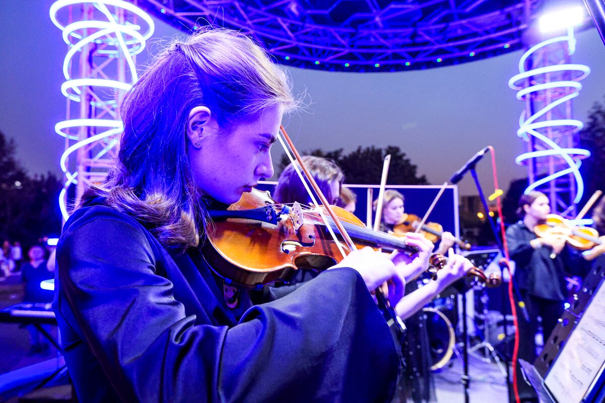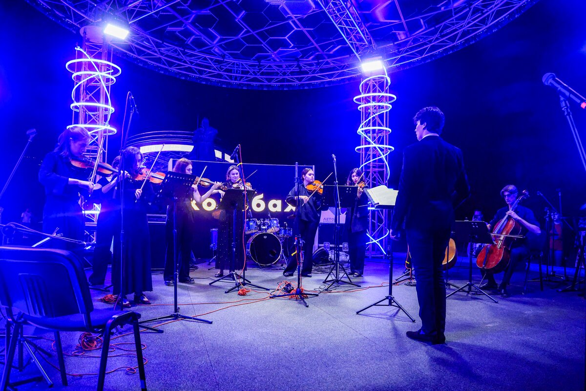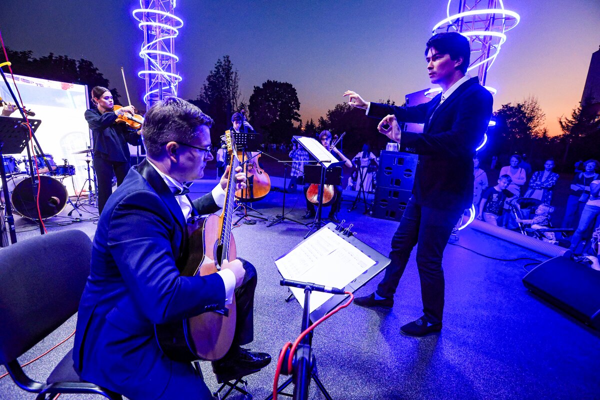 7 сентября в День города телеканал Москва 24 представил концерт в парке искусств "Музеон". Камерный оркестр студентов Московской консерватории "Околобаха" исполнил произведения различных эпох.
