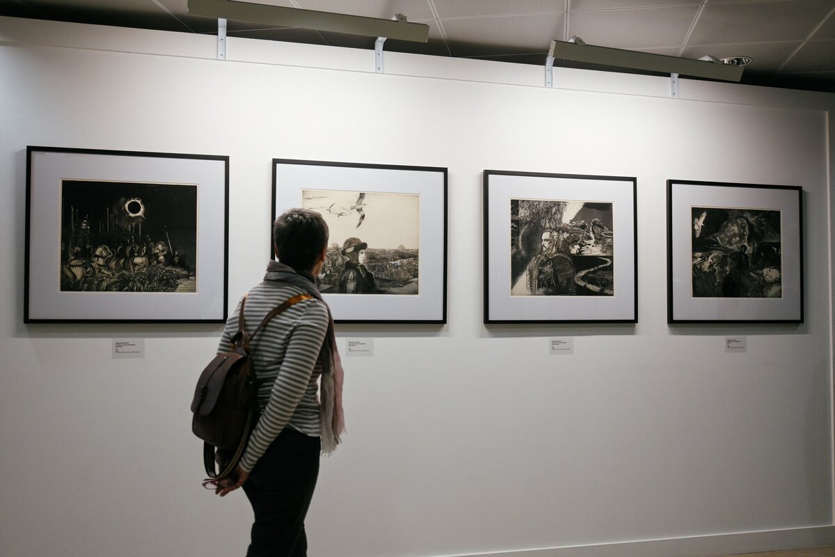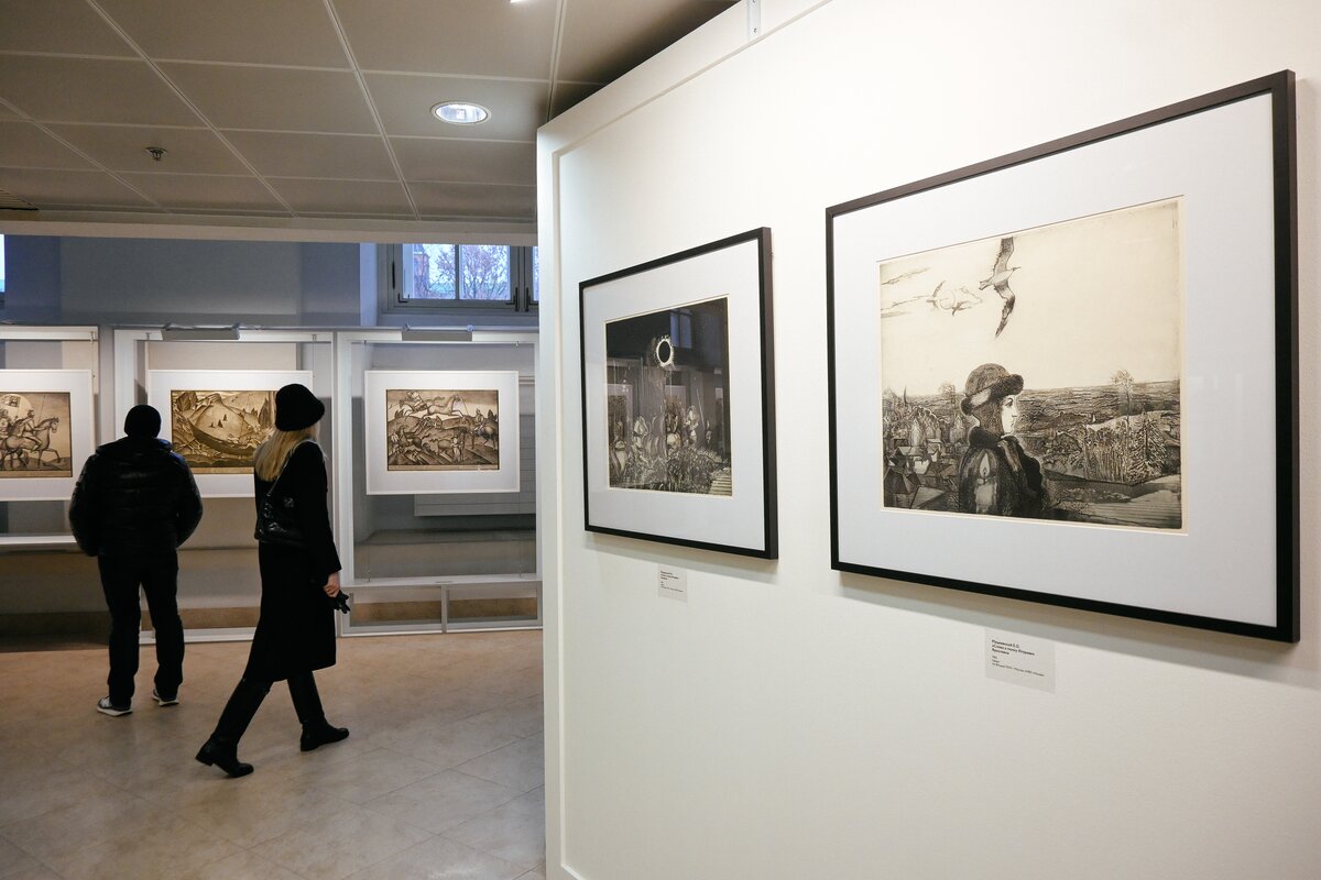 Выставка "Слово о полку Игореве" представляет иллюстрации к знаменитому древнерусскому произведению. Анатолий Кулинич, автор серии "Легенда Забайкальских гор. Землепроходцы земли Сибирской", путешествовал по Сибири и Уралу, создавая графические работы, посвященные народному творчеству.