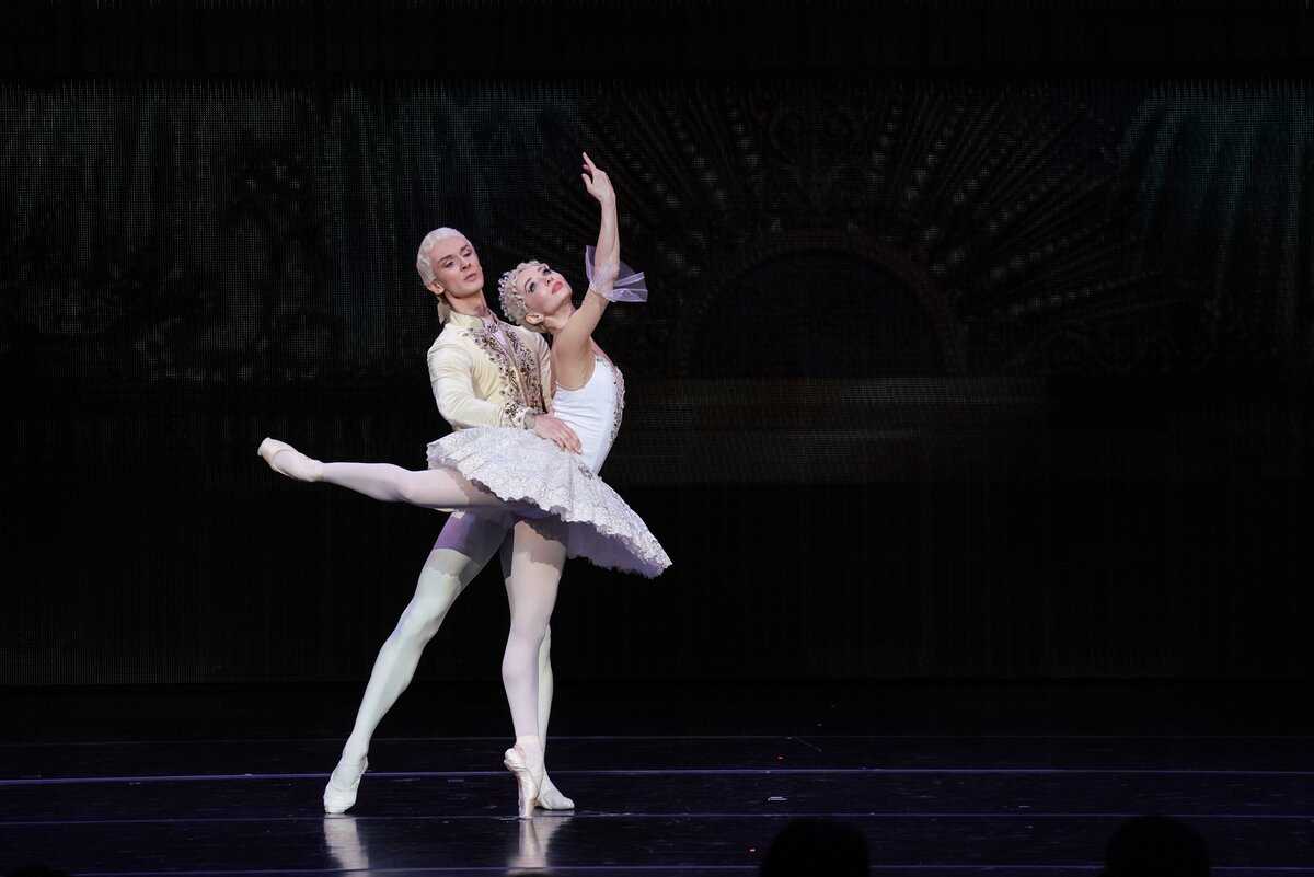 Артисты Мариинского театра Надежда Батоева и Никита Корнеев представили па-де-де из "Лебединого озера".
