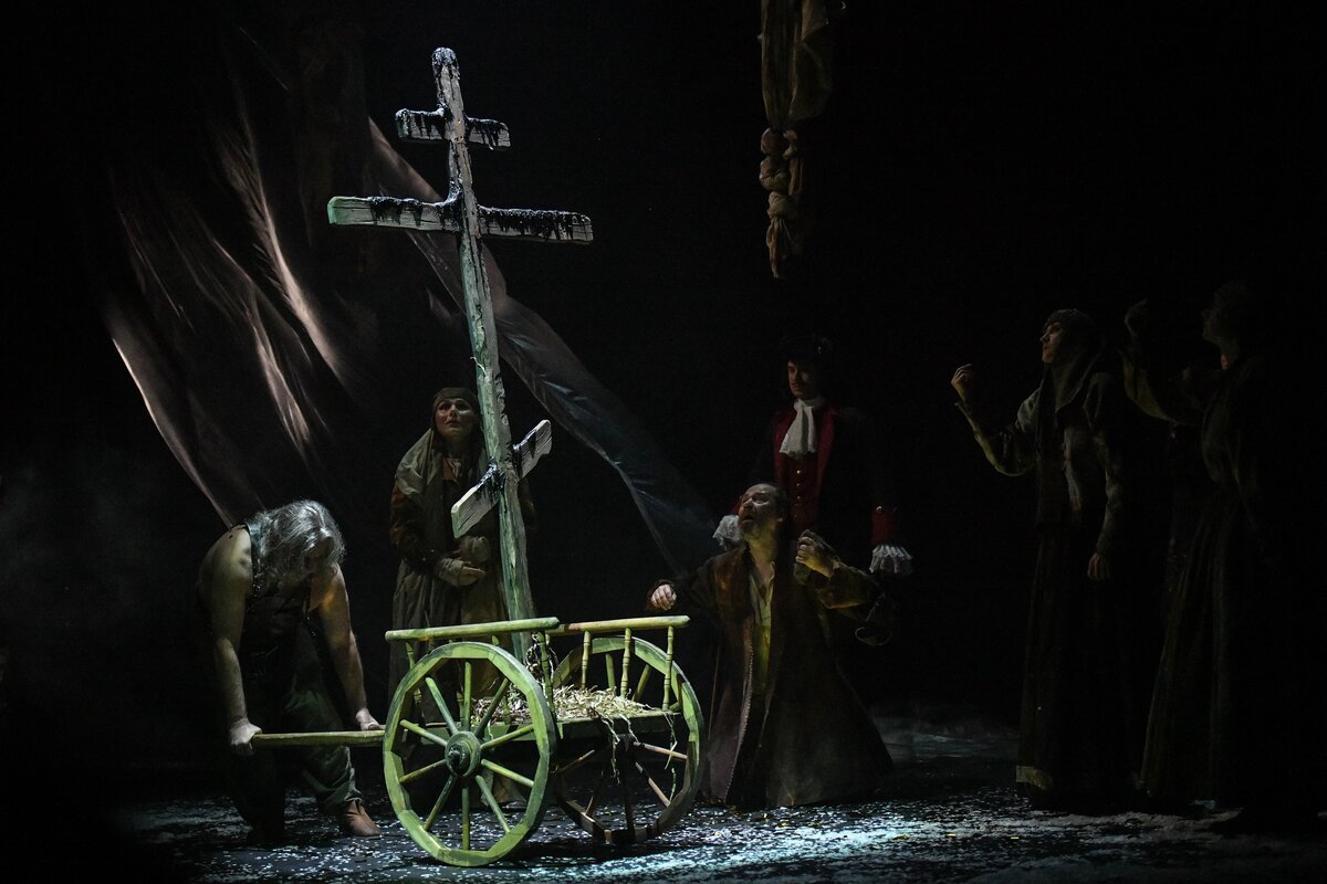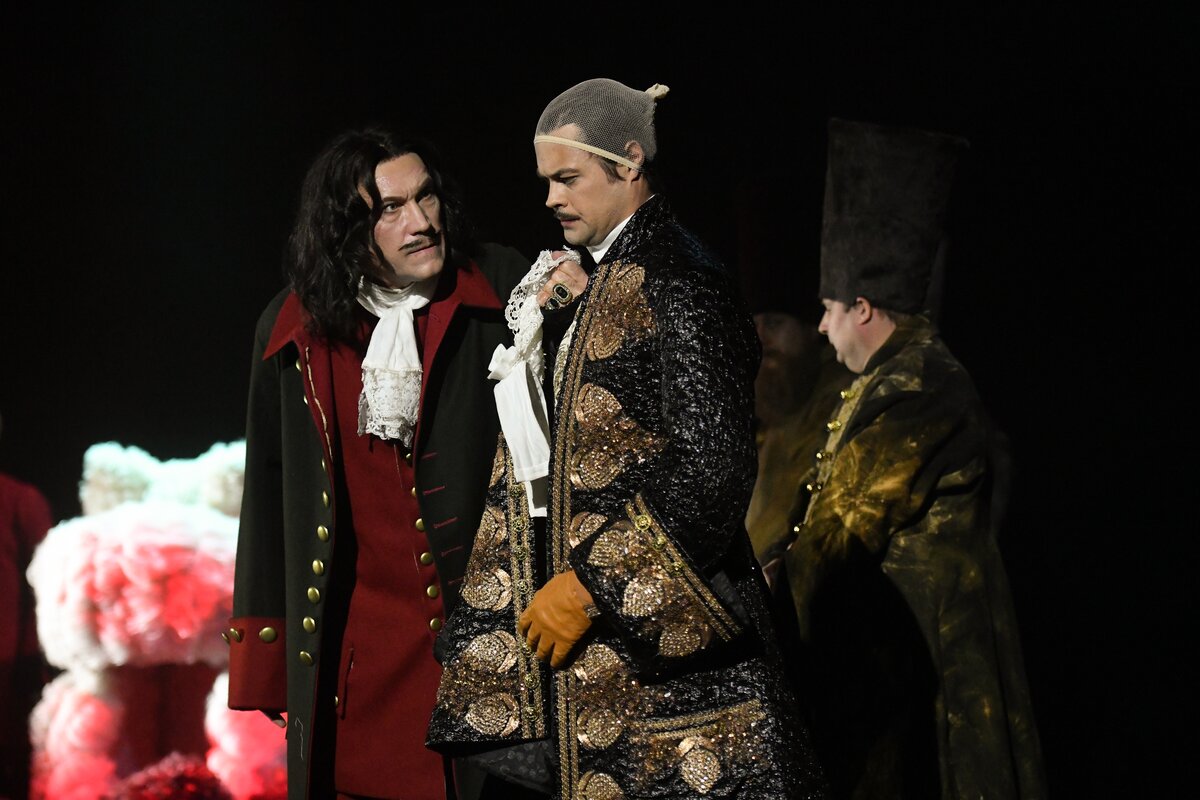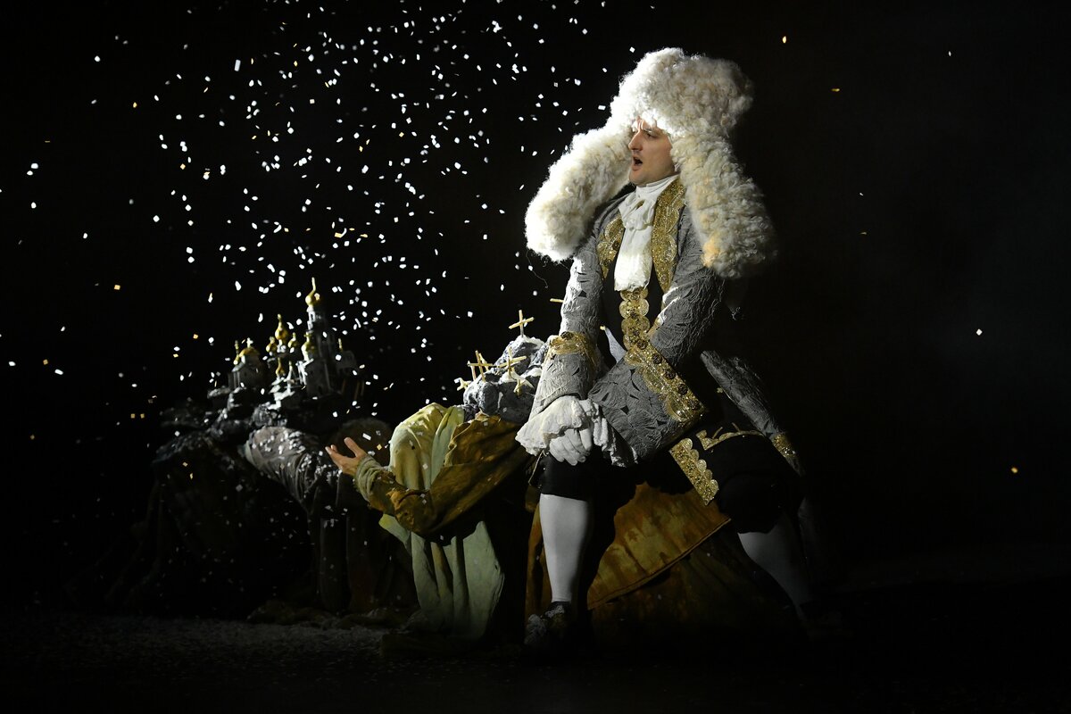 В этом году исполняется 300 лет с момента принятия Петром I императорского титула. По словам руководителя театра Юрия Грымова, в первом спектакле речь идет о том, "как под знаменем Христа можно служить и Антихристу". Главную роль в нем исполнил актер Юрий Анпилогов.