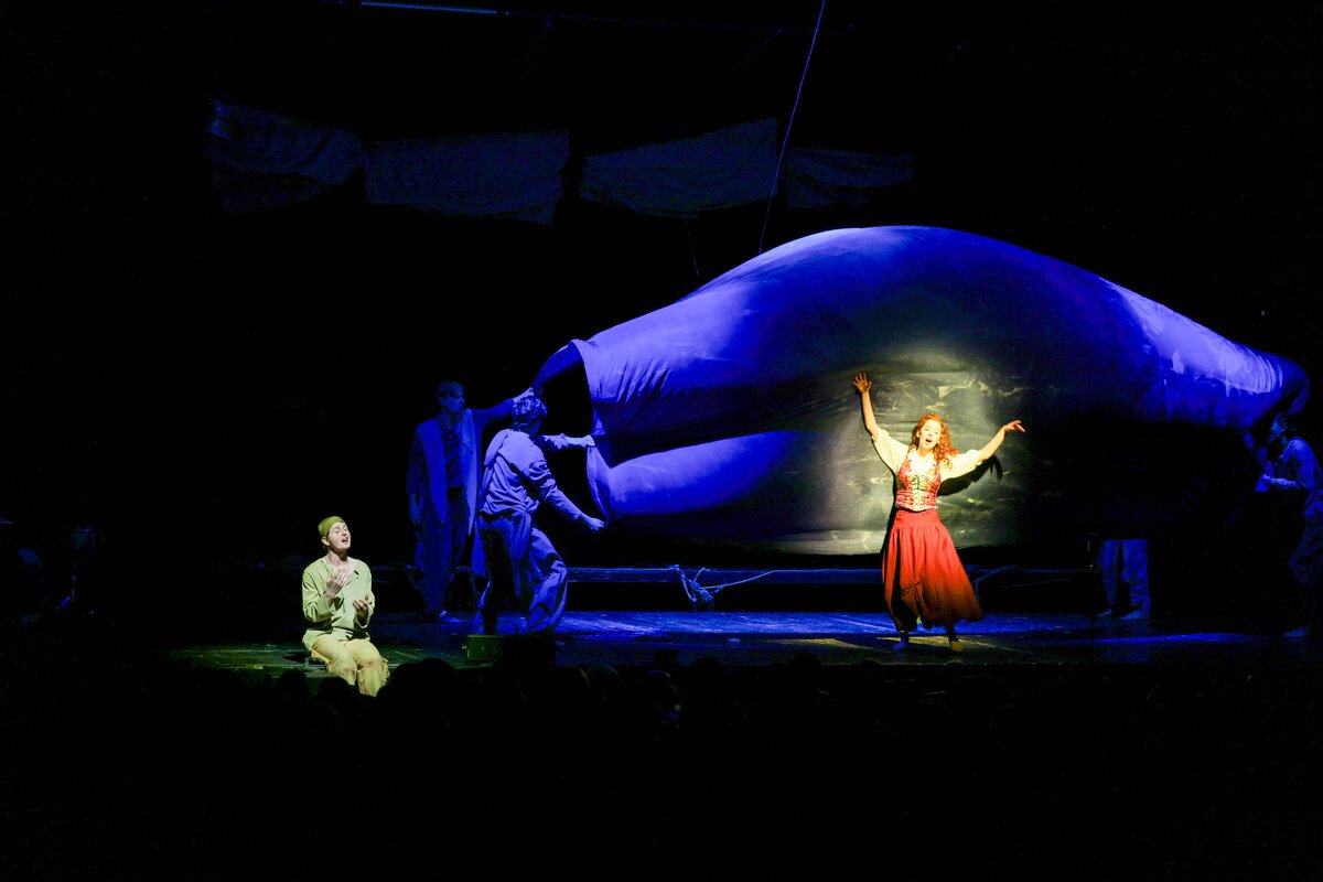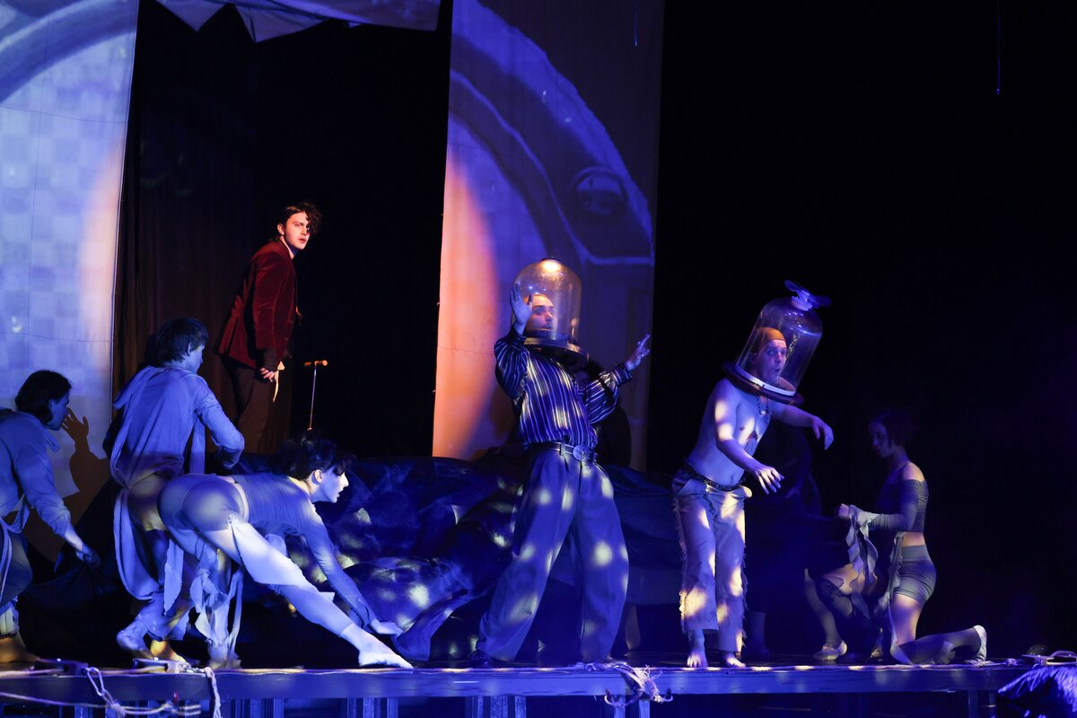 Открыл фестиваль спектакль "Человек-амфибия" Российского государственного института сценических искусств из Санкт-Петербурга. Постановка по роману Александра Беляева соединила научную фантастику, клоунаду и эстетику немого кино. В тот же день на Малой сцене показали "Горе от ума" Института современного искусства.