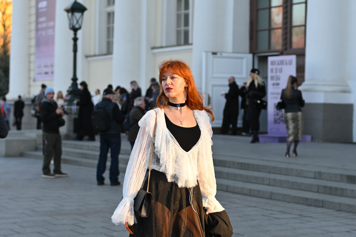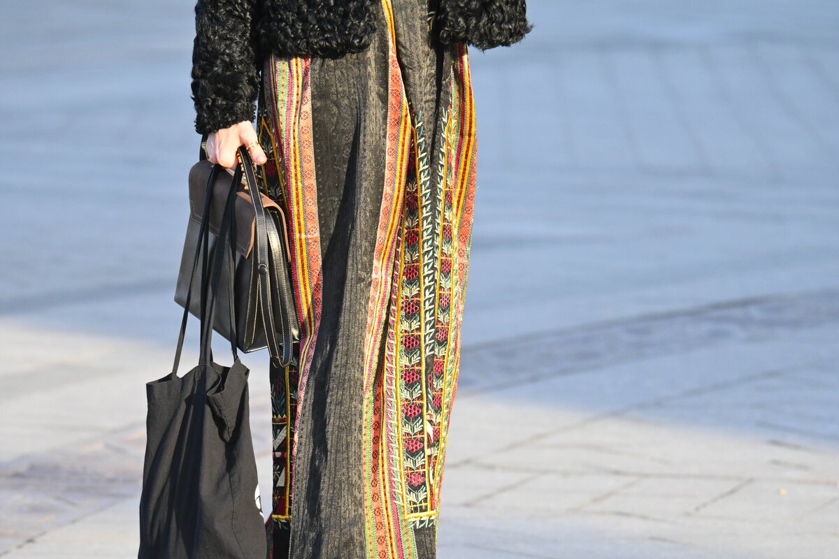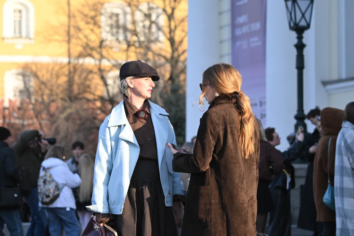 На Неделе моды присутствовало множество стильно одетых посетителей. Многие из них выбрали сдержанные и лаконичные образы. Тем не менее некоторые оделись необычно и ярко.