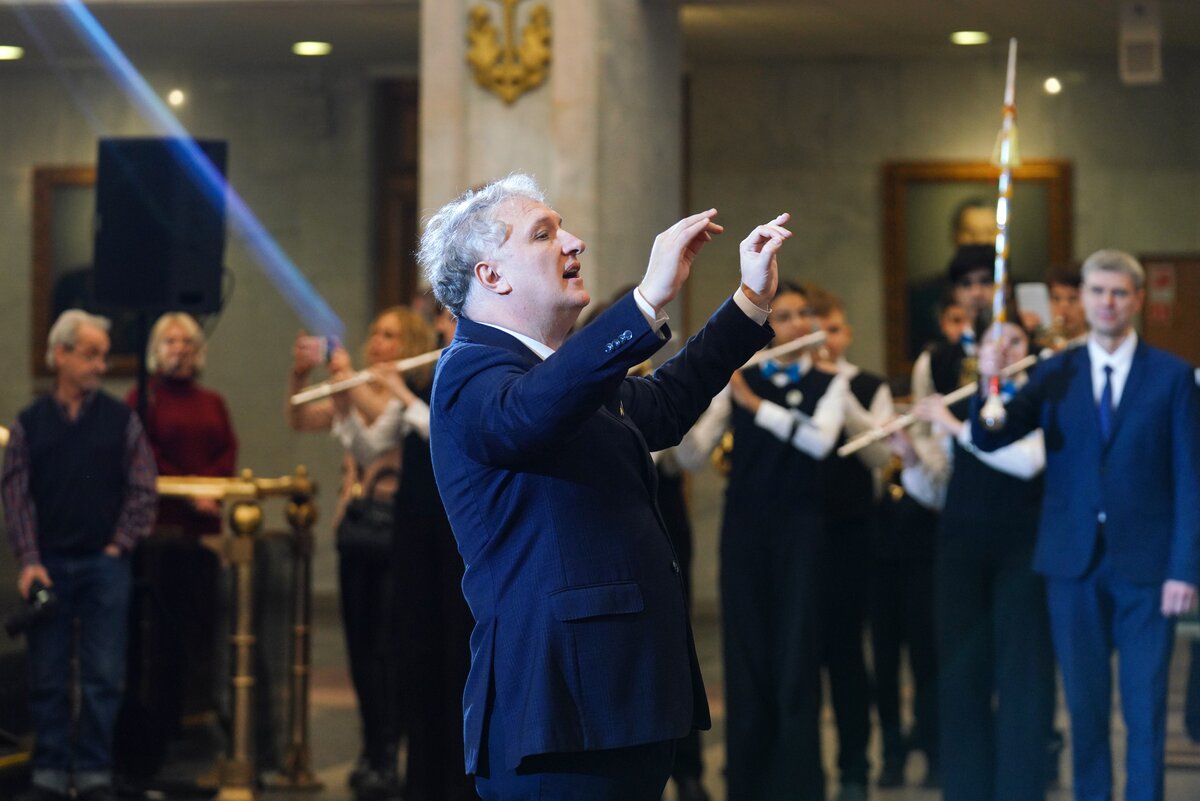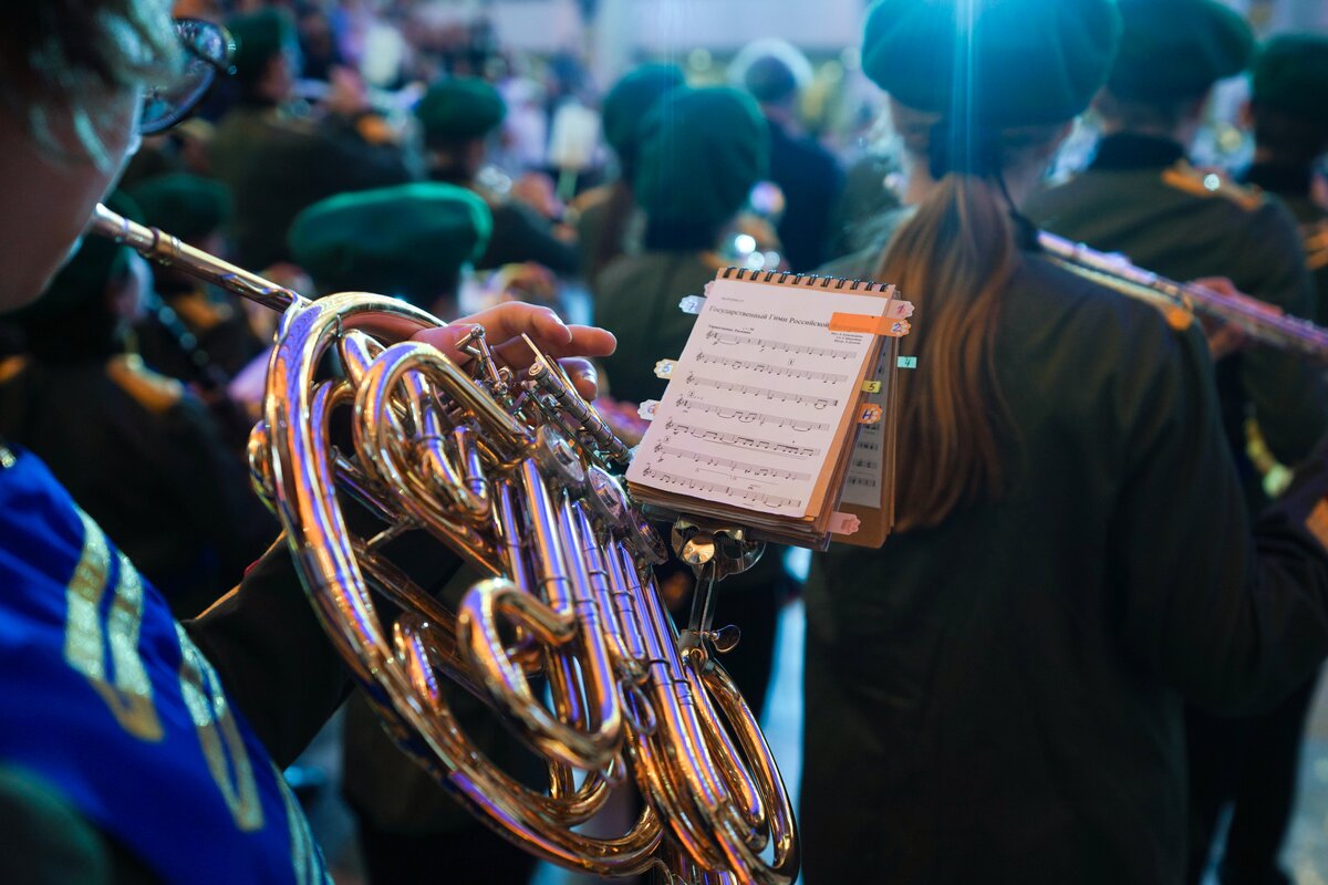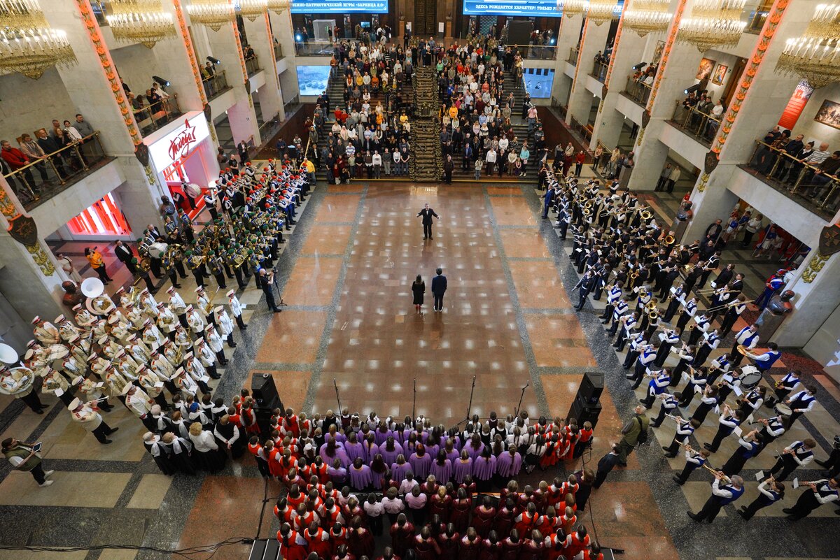 В Музее Победы 23 февраля прошел праздничный концерт "Фанфары Победы – защитникам Отечества – 2026!" В составе сводного духового оркестра и сводного хора выступили свыше 500 юных музыкантов, которые исполнили произведения, посвященные России, мужеству, воинской доблести и героизму.