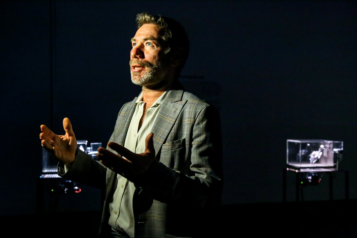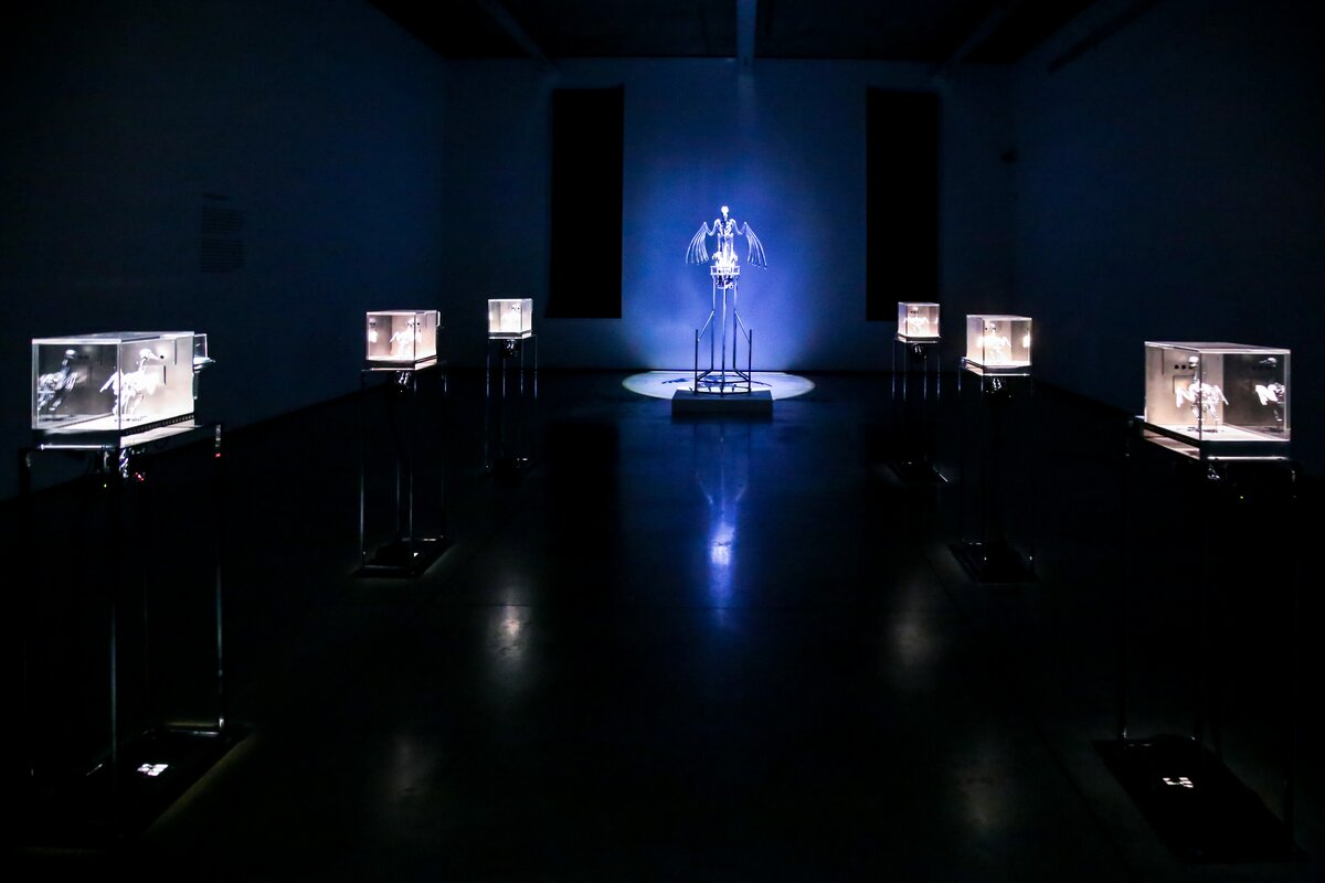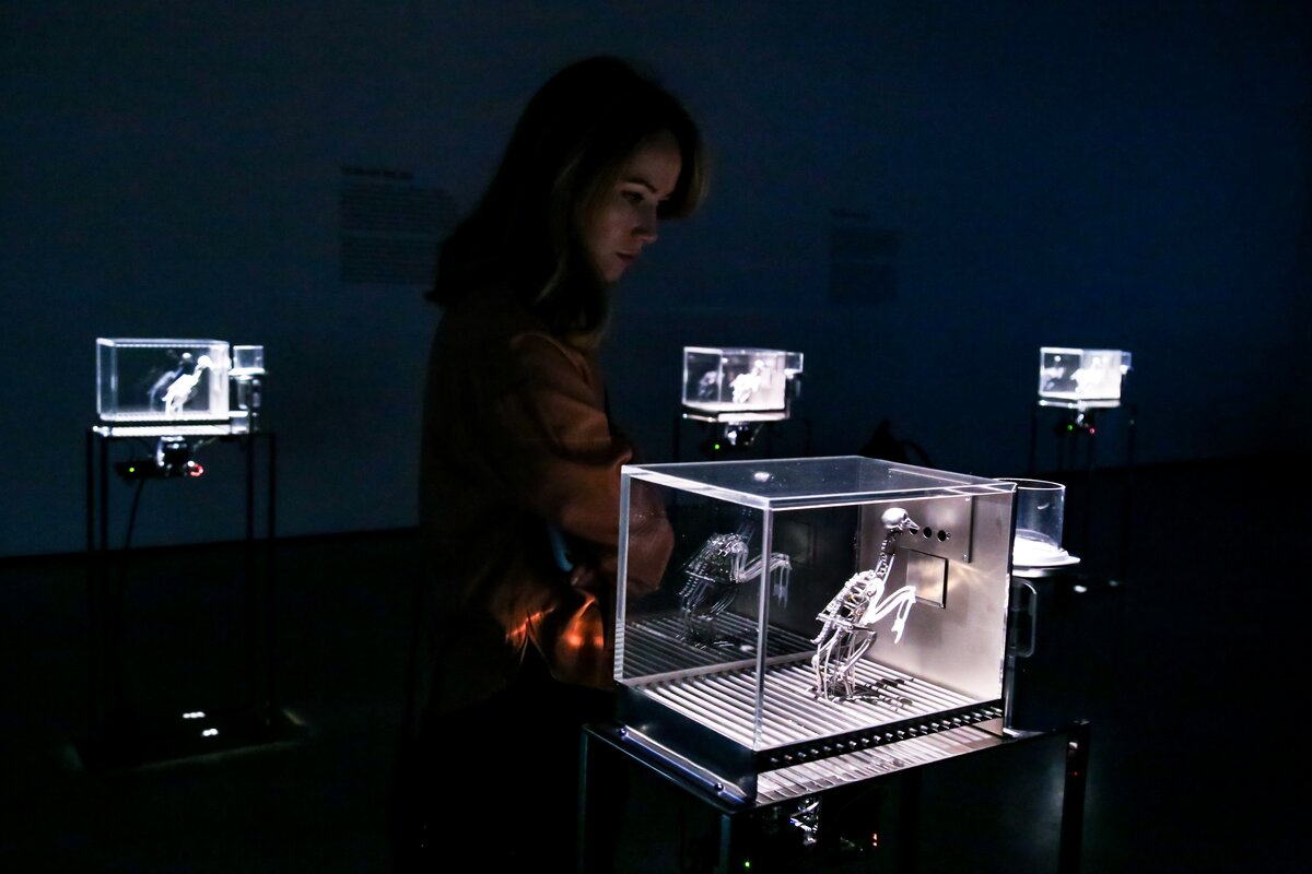 Проект "Зона машин" – это размышления художника о растущей зависимости современного человека от все более механизированного мира. В экспозиции представлены работы художника разных лет и техник: зоотроп The Centrifugal Soul, кинетические скульптуры The Machine Zone и The Nerve Rack, инсталляция Alpha Omega, живописная серия Expiration Painting и новый живописный цикл The Operant Conditioning Chamber.