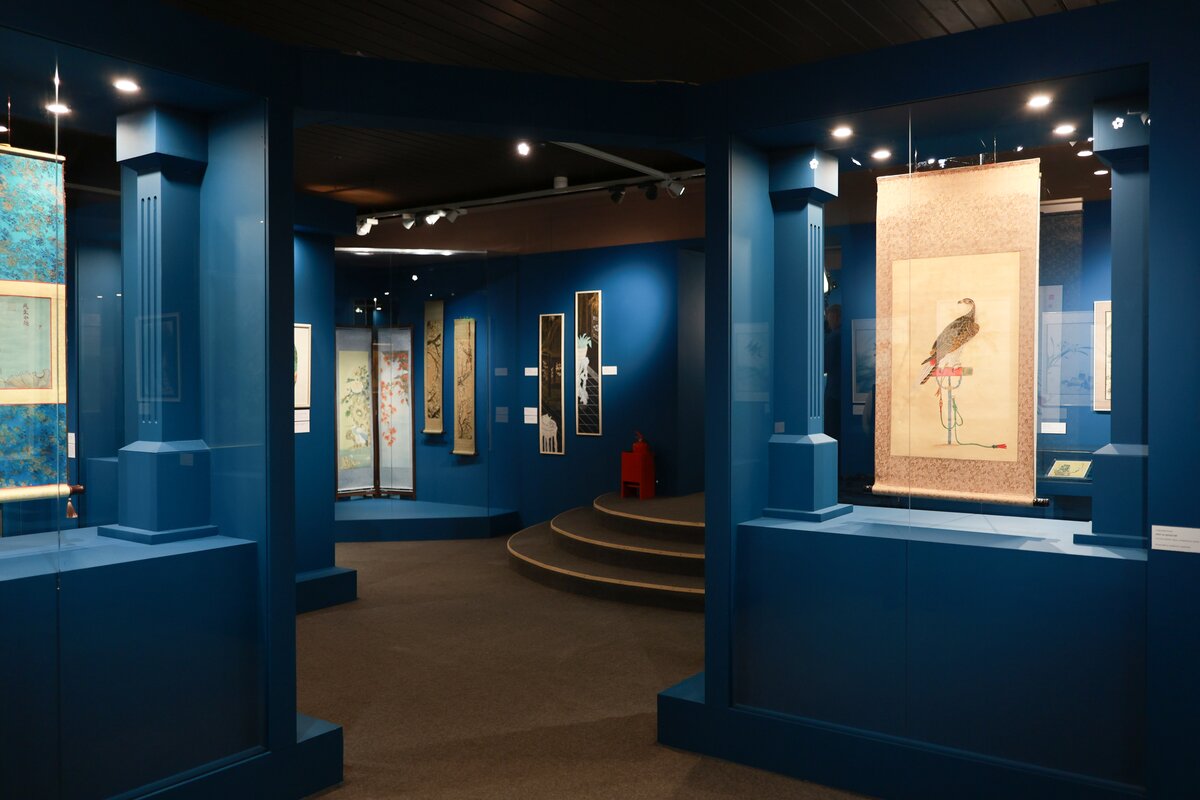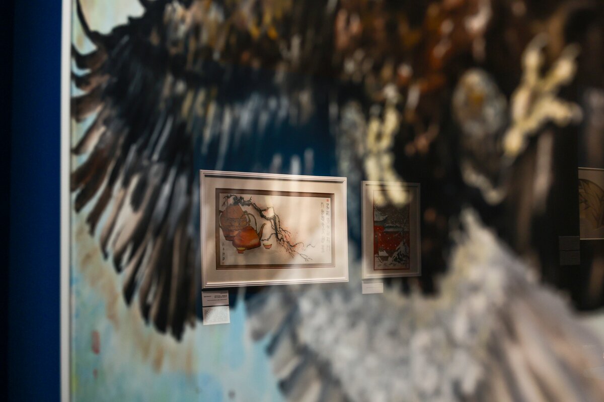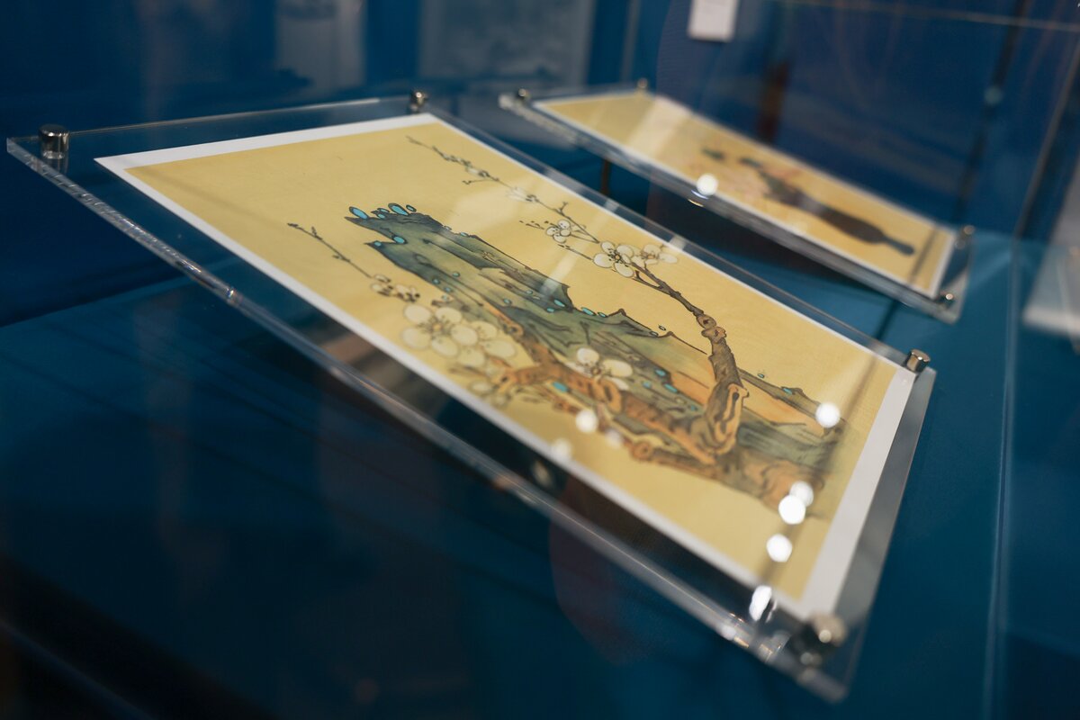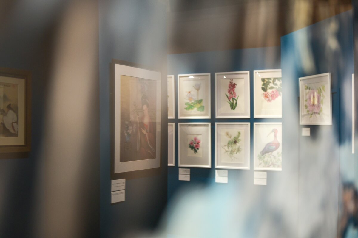 Экспозиция включает пейзажи, анималистическую и ботаническую иллюстрацию, бытовые сцены и каллиграфию. Многие работы оформлены в виде свитков, другие в рамы, сочетающие восточную эстетику с привычным для западного зрителя форматом. Отдельное внимание уделено ботаническим "портретам цветов", выполненным с художественным мастерством.
