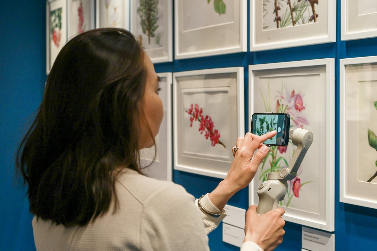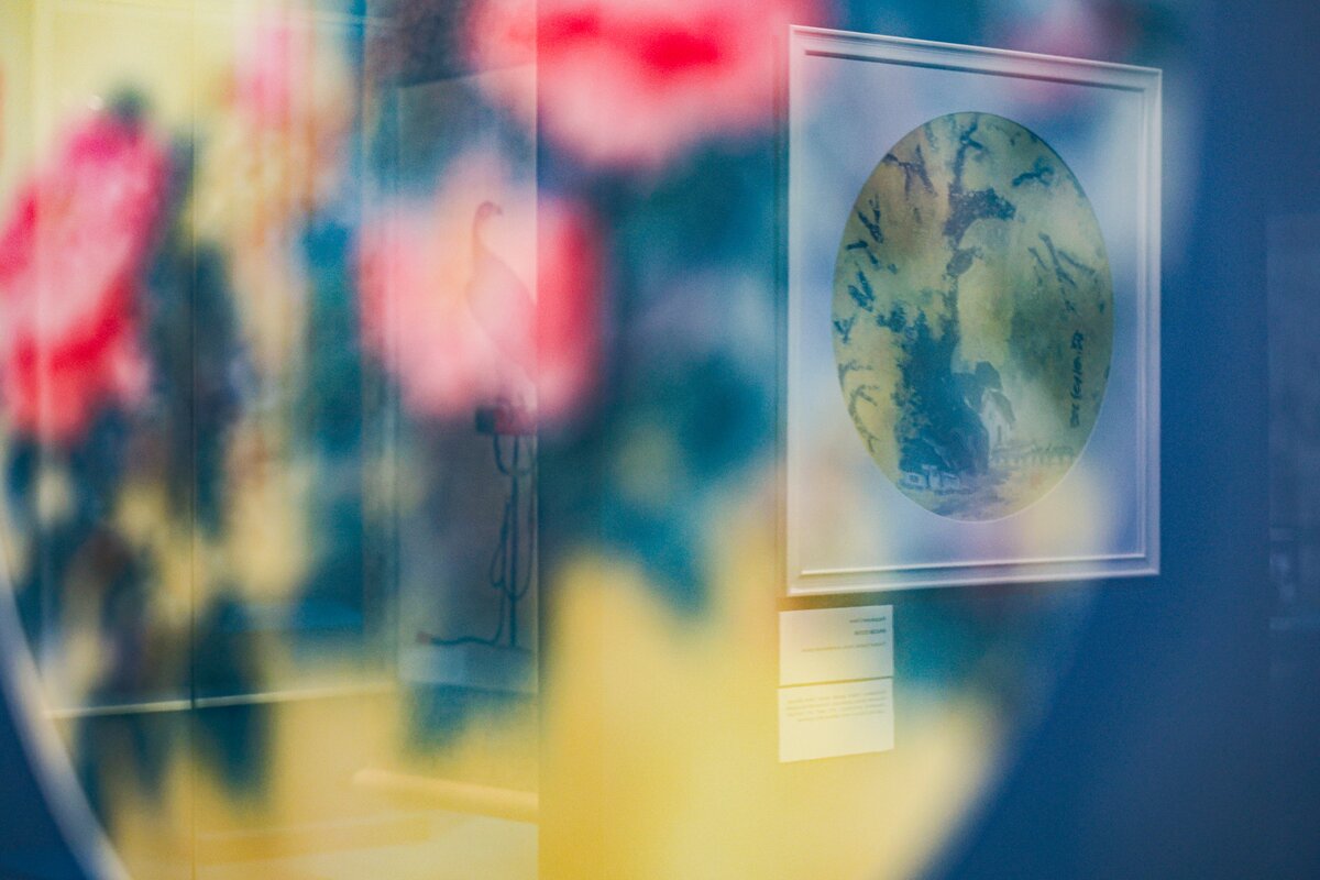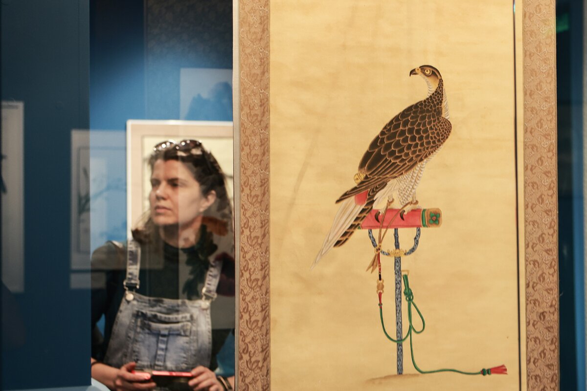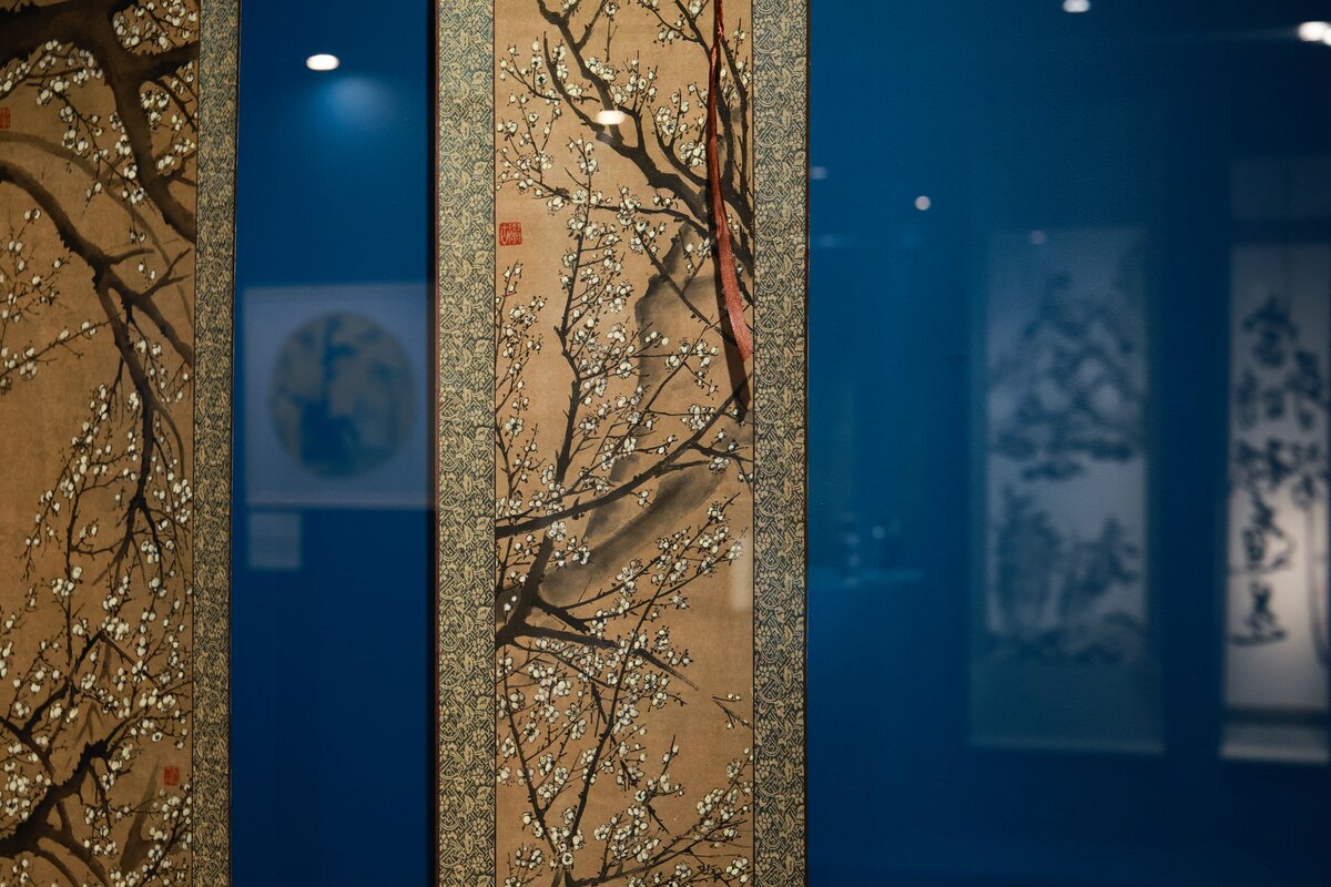 Экспозиция включает пейзажи, анималистическую и ботаническую иллюстрацию, бытовые сцены и каллиграфию. Многие работы оформлены в виде свитков, другие в рамы, сочетающие восточную эстетику с привычным для западного зрителя форматом. Отдельное внимание уделено ботаническим "портретам цветов", выполненным с художественным мастерством.