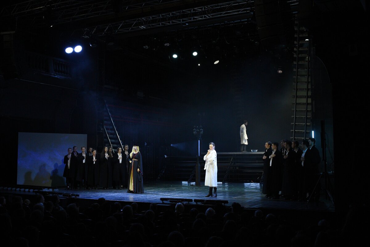 К столетию Театра имени Гоголя артисты представили юбилейный спектакль-концерт "Век на сцене. Перезагрузка". Зрителям показали музыкальные номера из разных постановок, отрывки из современных спектаклей и рассказали о ключевых моментах в истории театра. Продолжительность программы составила два часа.