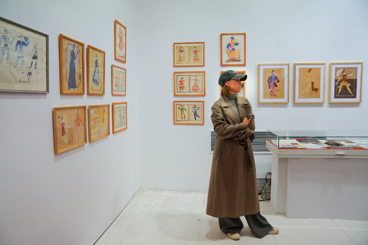 Выставка построена как ретроспектива и включает живопись, графику и документальные материалы. Она разделена на тематические блоки: начало творческого пути, театральные работы, пейзажные наблюдения, увлечение восточной культурой, изучение женской идентичности и проблема орнамента.
