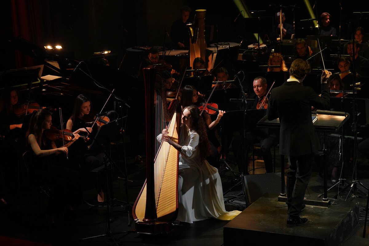 На сцене выступила симфоническая капелла "Академия Русской музыки" под управлением дирижера Ивана Никифорчина.