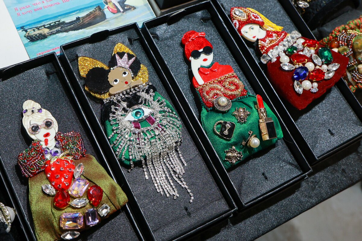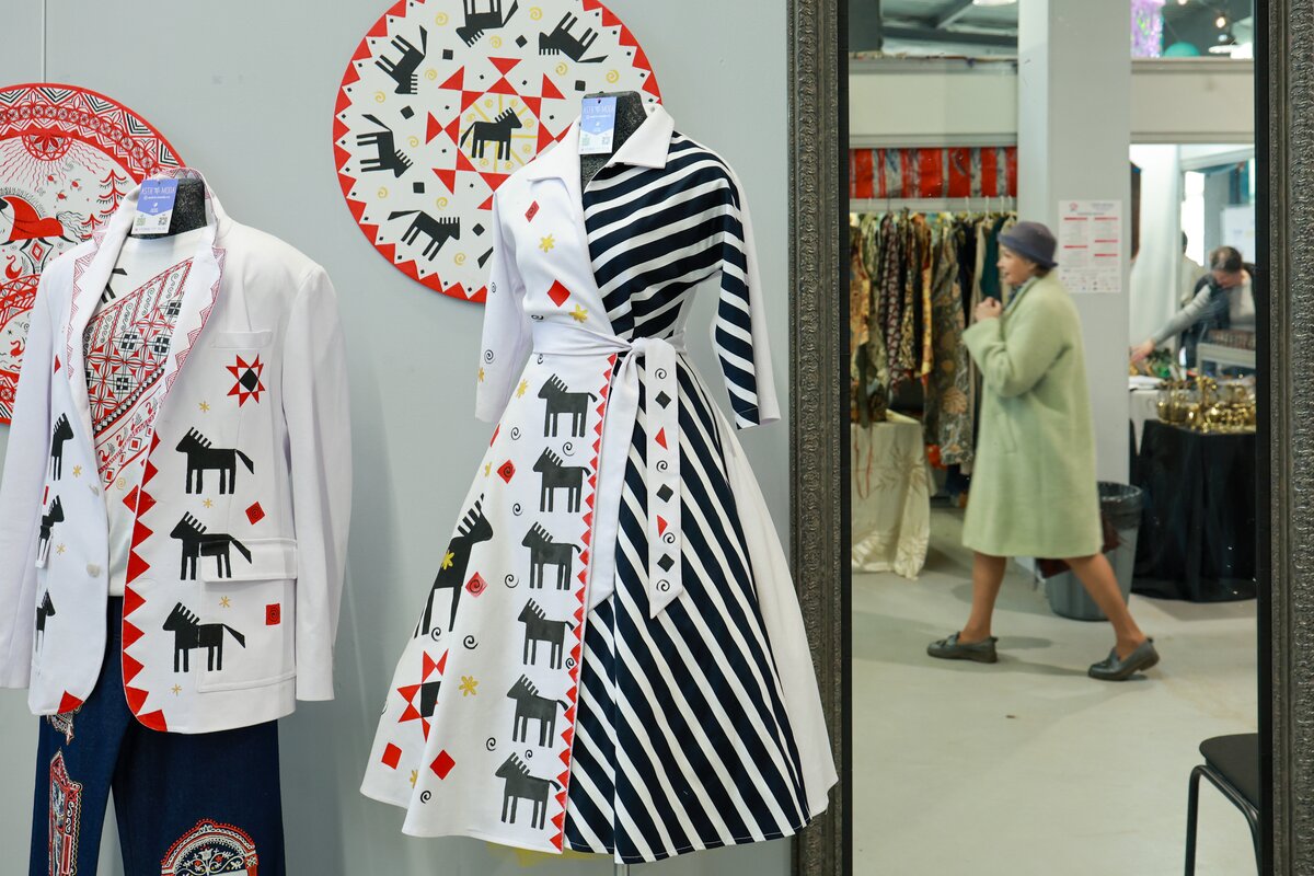 На выставке были представлены десятки направлений народного и современного искусства: керамика, ювелирные изделия, эмальерное искусство, изделия из стекла и металла, резьба по дереву и кости, кружевоплетение, вышивка, живопись, а также дизайнерская и этническая одежда.