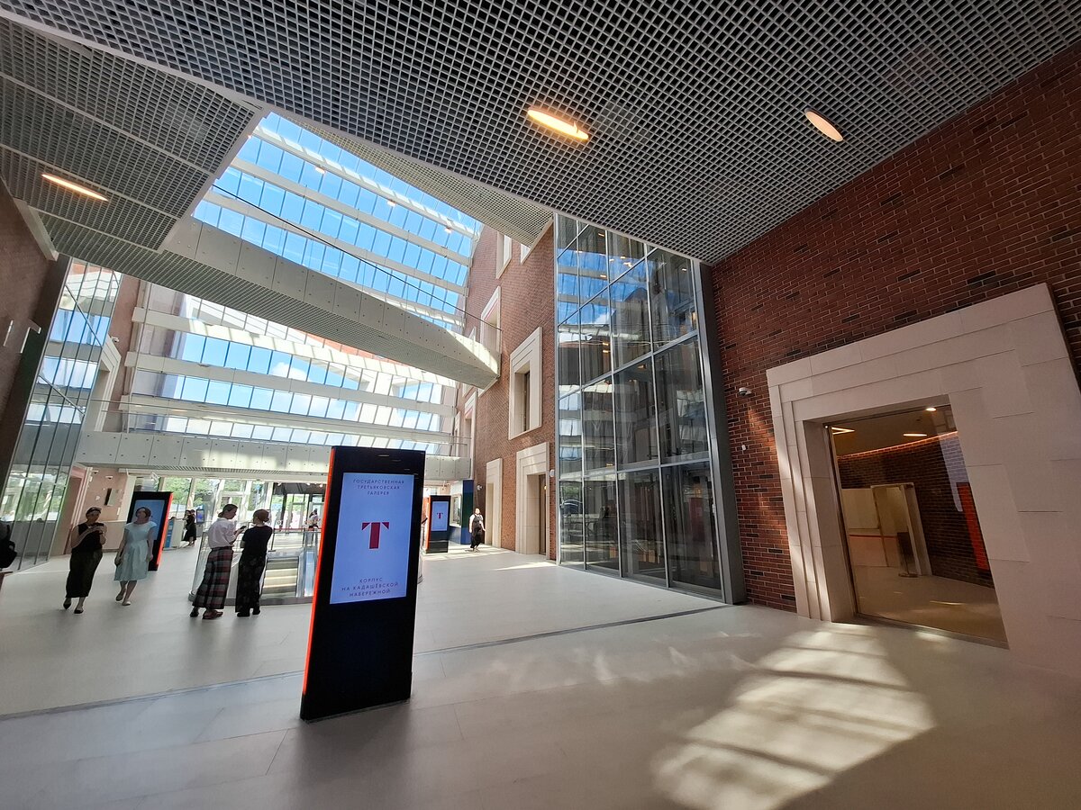 На Кадашевской набережной для посетителей открылся новый корпус Третьяковской галереи. В здании сделали современные экспозиционные и выставочные пространства, а в административной части расположили реставрационные мастерские живописи, графики, скульптуры, а также научный фотоархив.