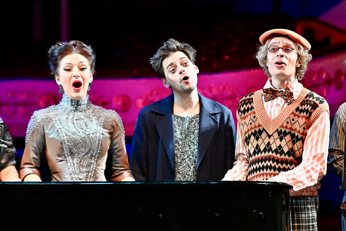 В 19:00 зрители увидели мюзикл "Доходное место" по мотивам пьесы Александра Островского. Постановка рассказывает историю молодого чиновника Жадова, который оказывается перед сложным выбором между честностью и материальным благополучием.