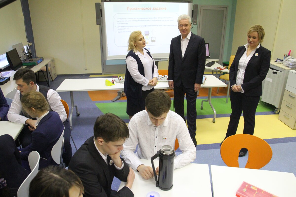 Мэр МосквыМэр посетил лицей, где обсудил проект по профопределению