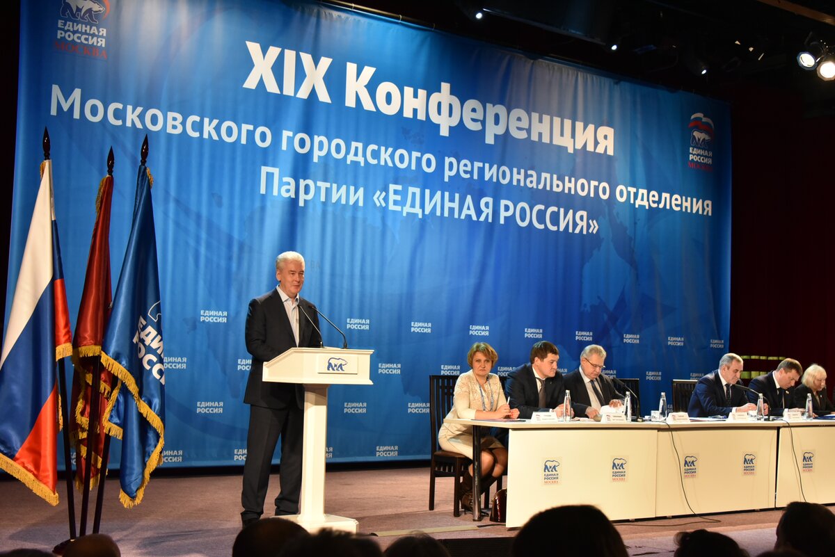 Мэр МосквыСергей Собянин выступил на конференции "Единой России"