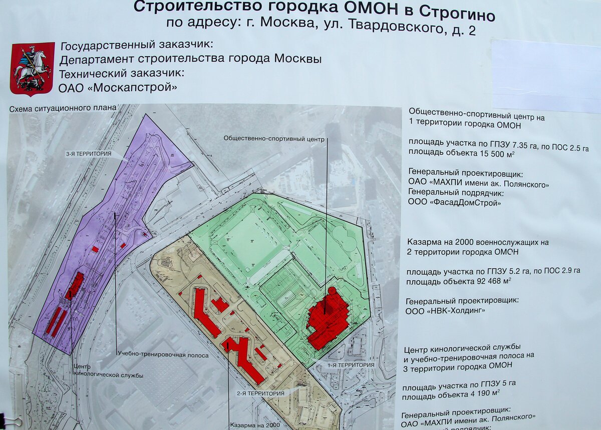 Сергей Собянин вместе с директором Федеральной службы войск национальной гвардии России Виктором Золотовым осмотрели строящуюся в районе Строгино базу Росгвардии. Она будет включать в себя общественно-спортивный центр, общежития (казармы), центр кинологической службы и другие объекты.