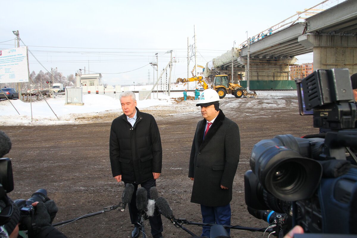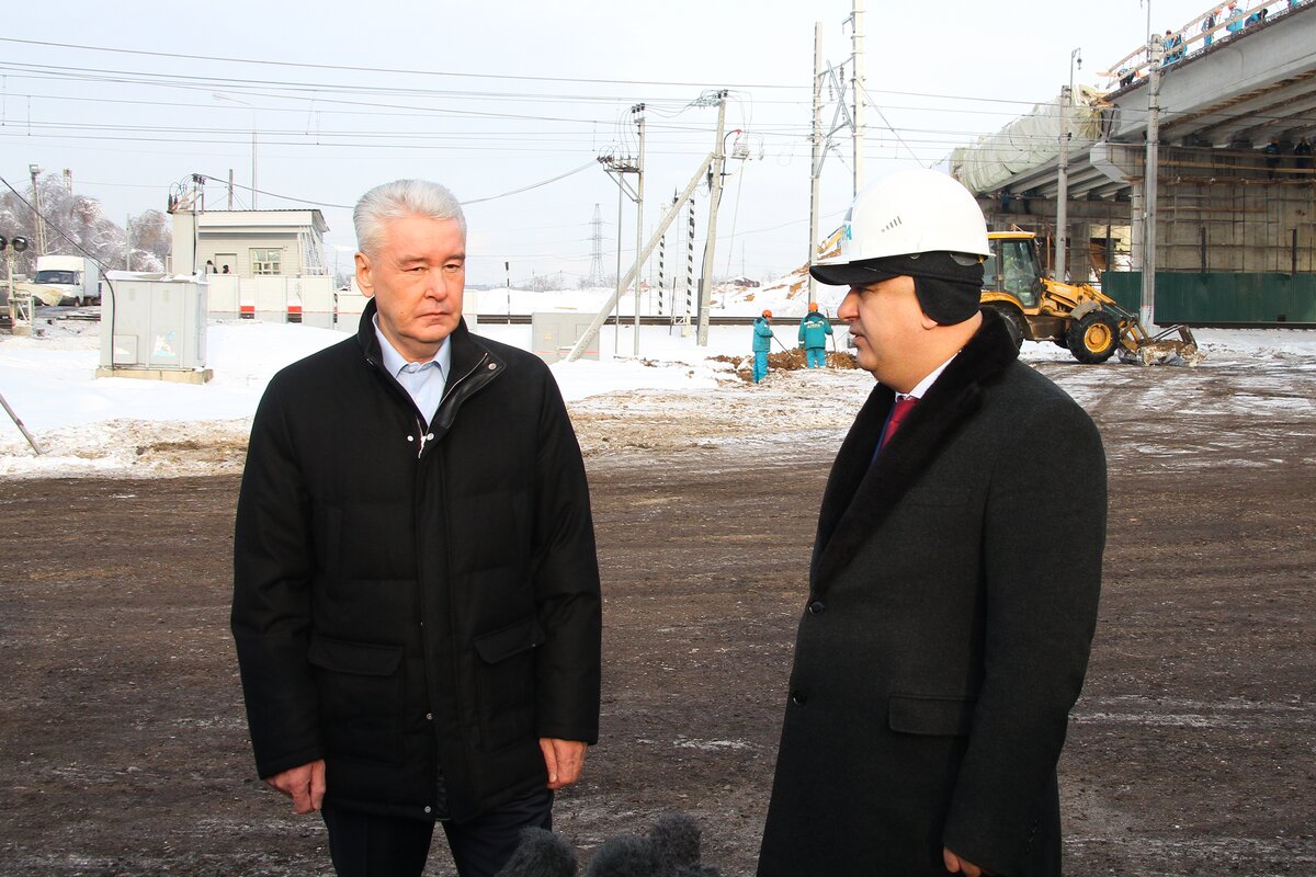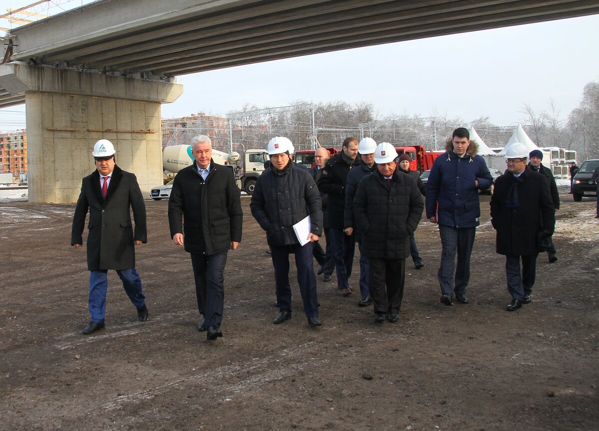 Мэр МосквыМэр осмотрел ход строительства автодорожного путепровода