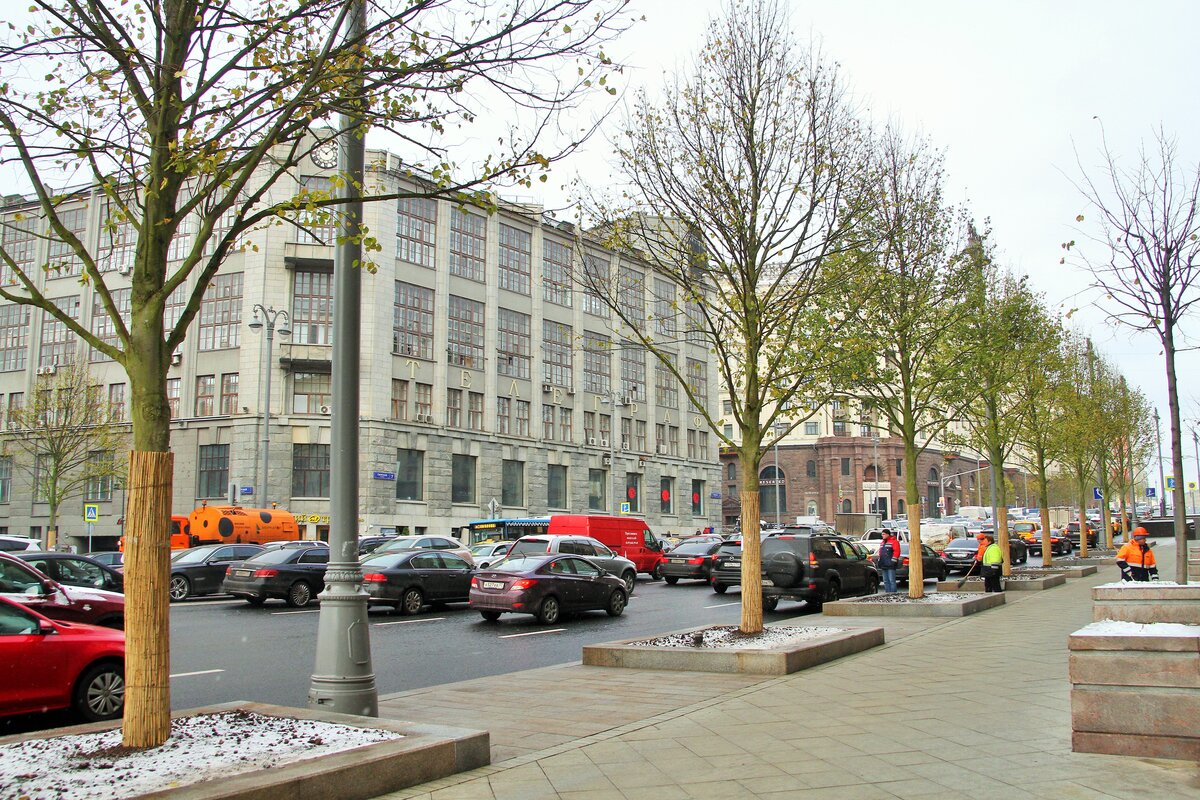 Высадка липовой аллеи – завершающий этап благоустройства участка Тверской по программе "Моя улица".