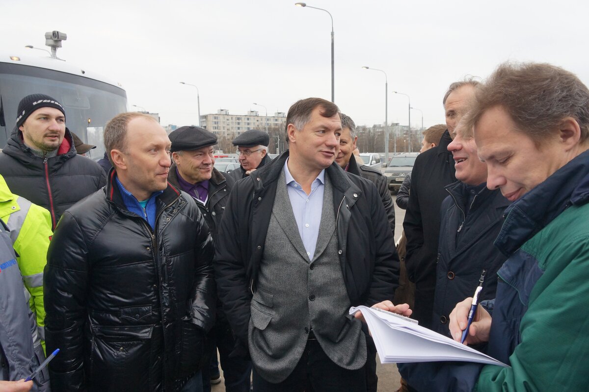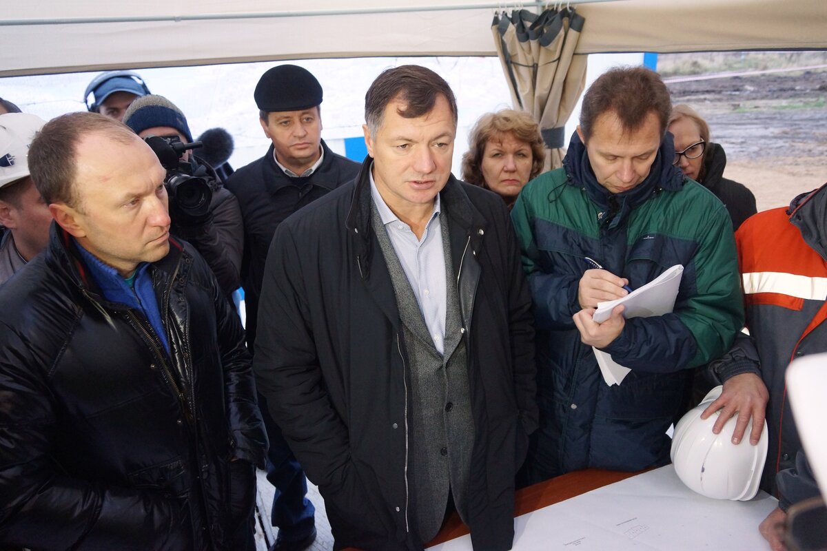Стройплощадку посетил заммэра Москвы Марат Хуснуллин. Чиновник осмотрел место, где ведутся работы.
