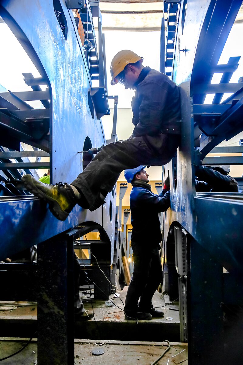Работы по реконструкции южного вестибюля станции метро "Ботанический сад" завершатся на два месяца раньше намеченного срока. Еще до Нового года обновленный вестибюль распахнет свои двери для пассажиров. В настоящий момент завершается сборка каркаса, на который рабочие позднее установят тяговые цепи, приводы и балюстраду новых эскалаторов.