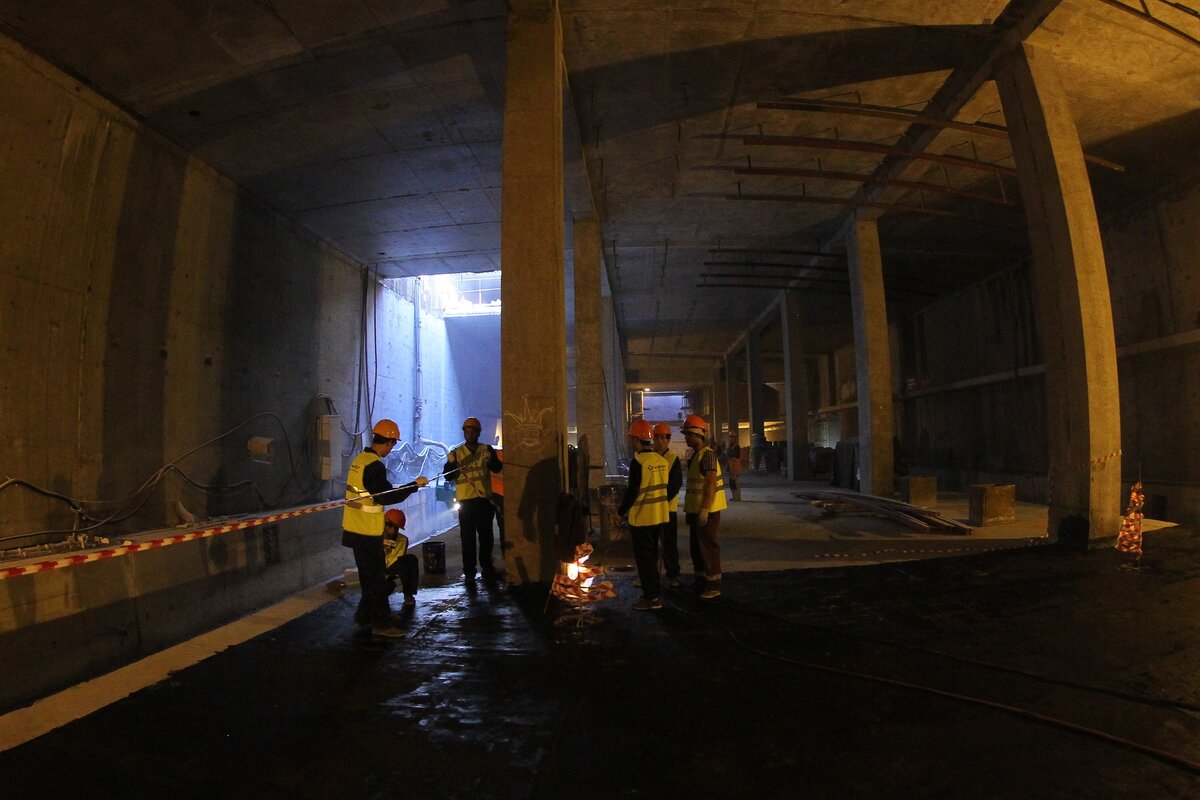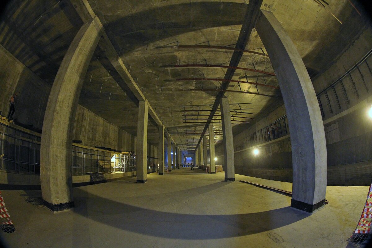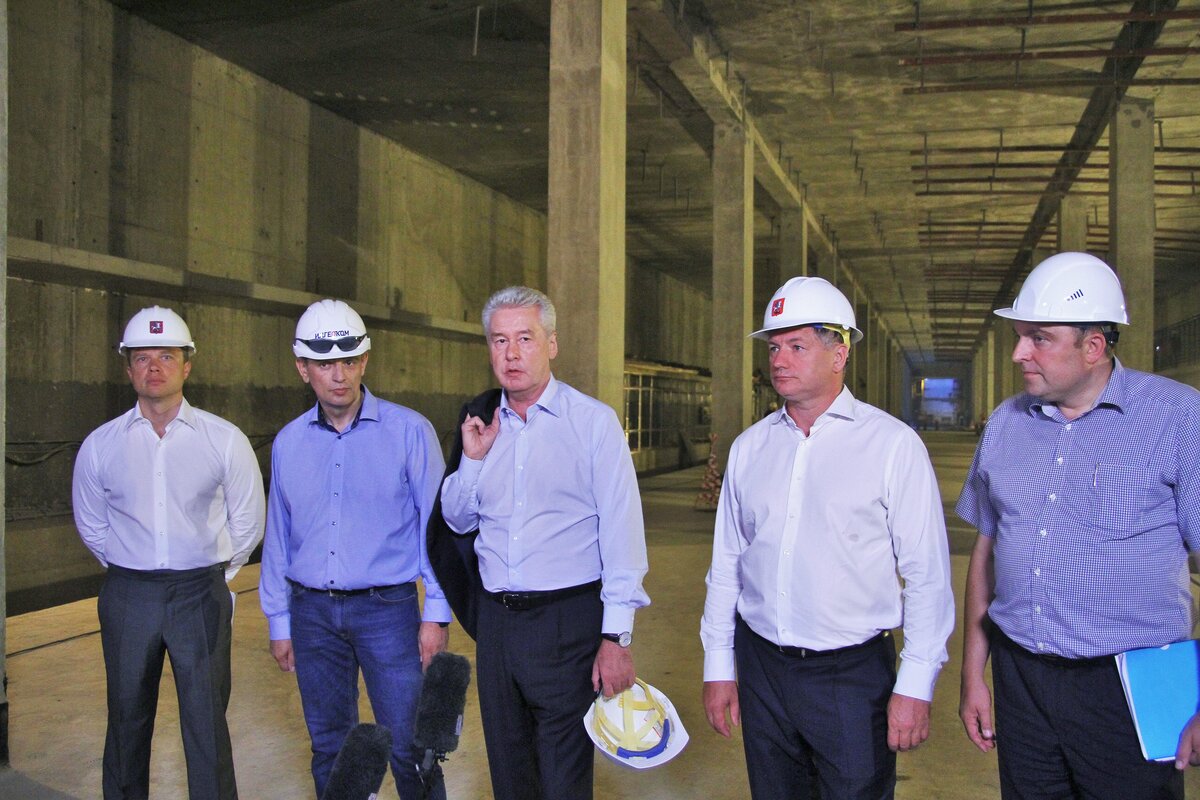 Сергей Собянин проверил ход отделочных работ на строящейся станции Третьего пересадочного контура Московского метрополитена "Шелепиха".