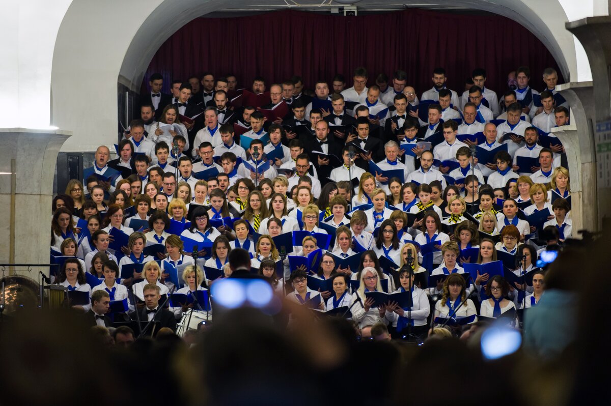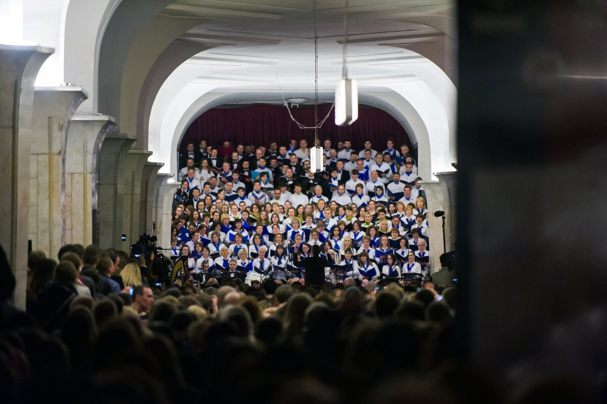 На станции метро "Кропоткинская" прошел ночной оперный концерт. Там прозвучало оперное пение солистов Большого театра, Датской королевской оперы, Академического Большого хора РГГУ и ряда других известных хоровых коллективов под аккомпанемент Президентского оркестра. Музыканты исполнили произведение итальянского композитора Пьетро Масканьи "Сельская честь".