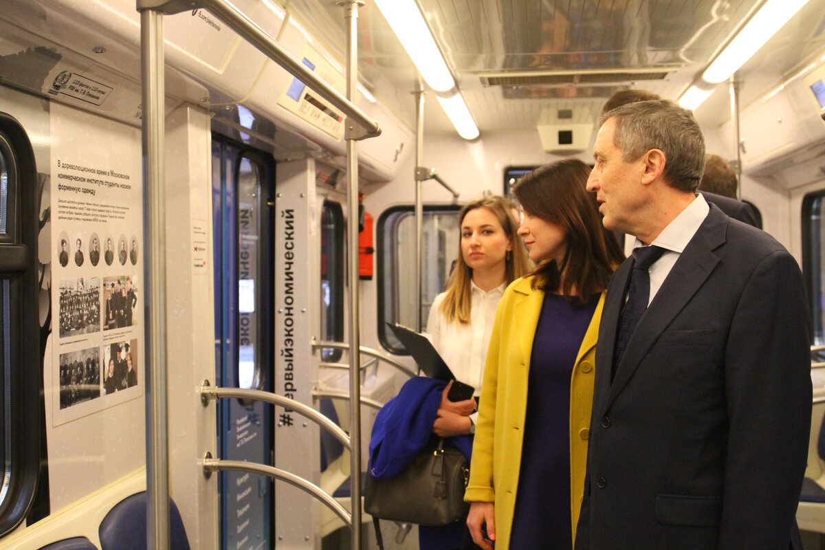 Именной поезд "Плехановец" начал курсировать по Серпуховско-Тимирязевской линии метро. Этот тематический поезд стал 25-м по счету в московском метро.