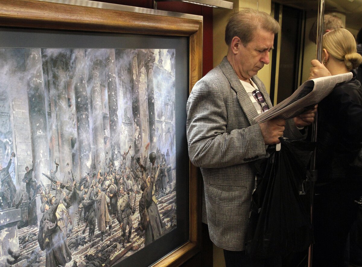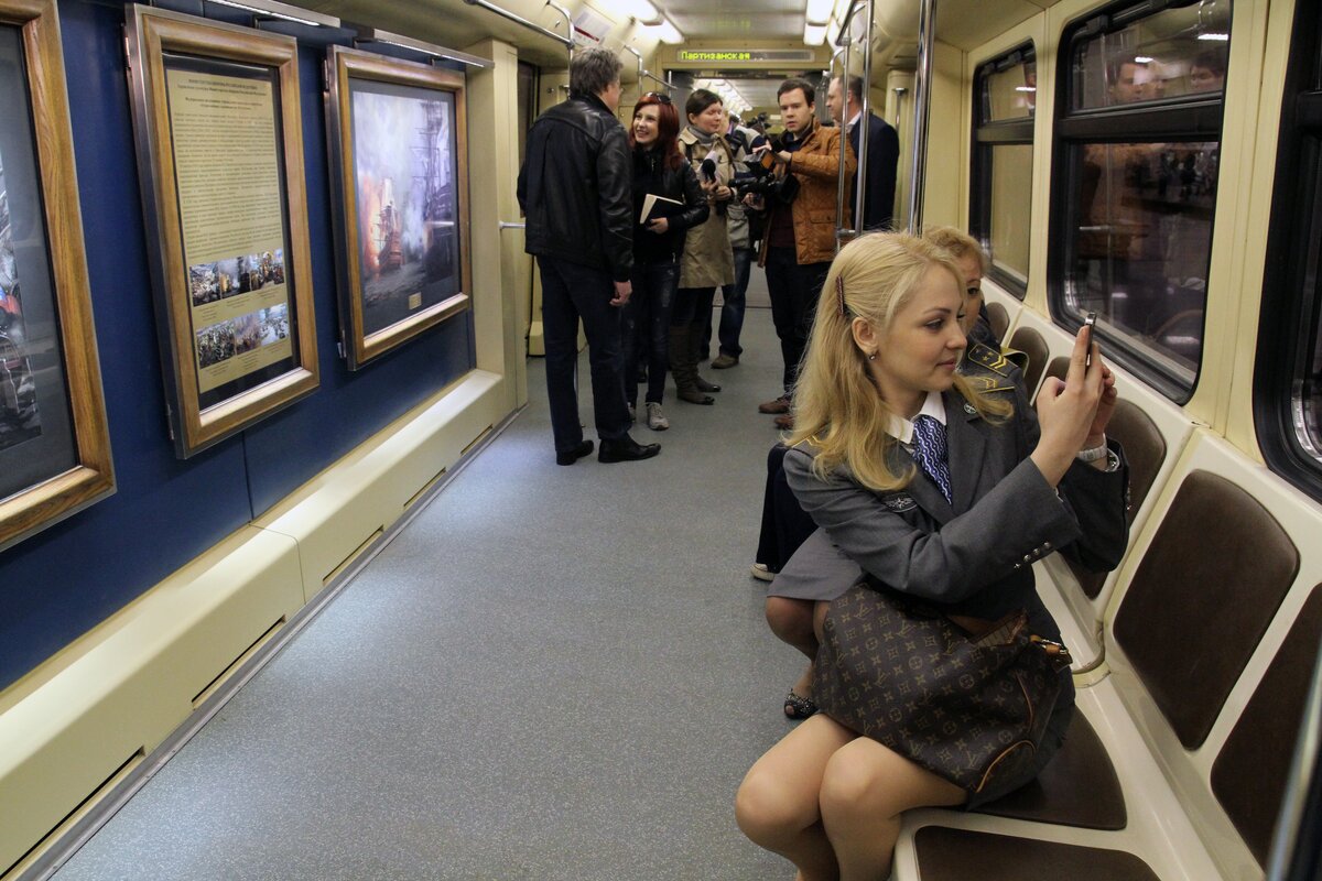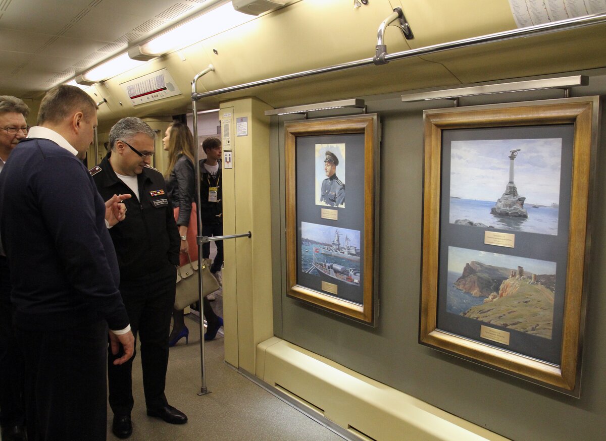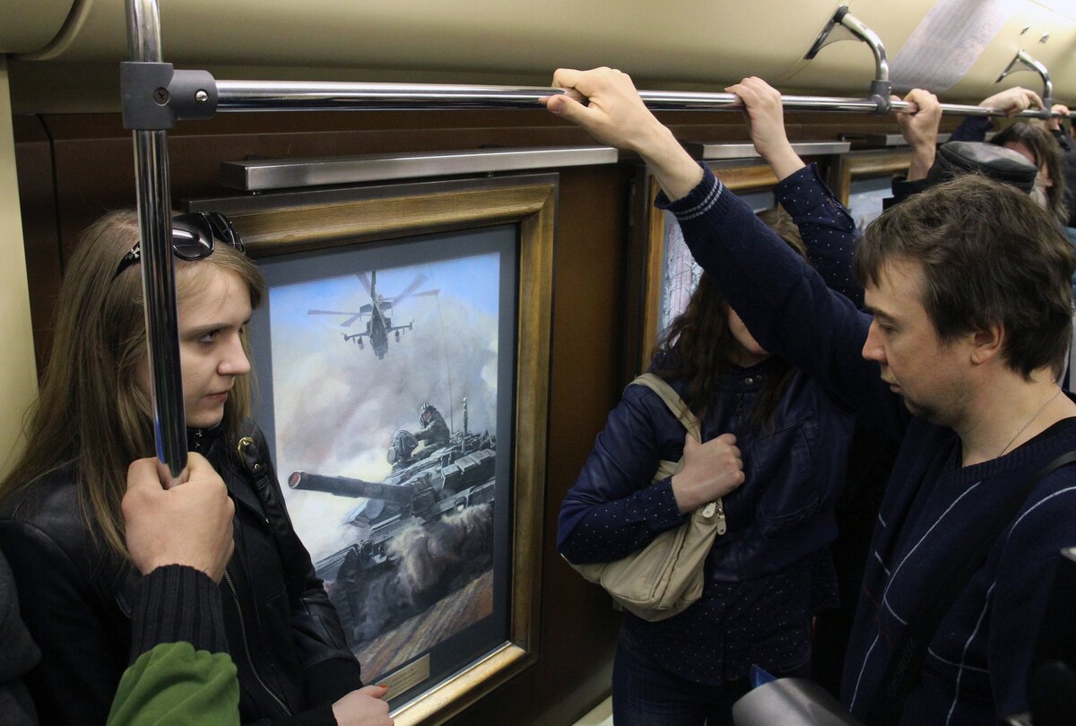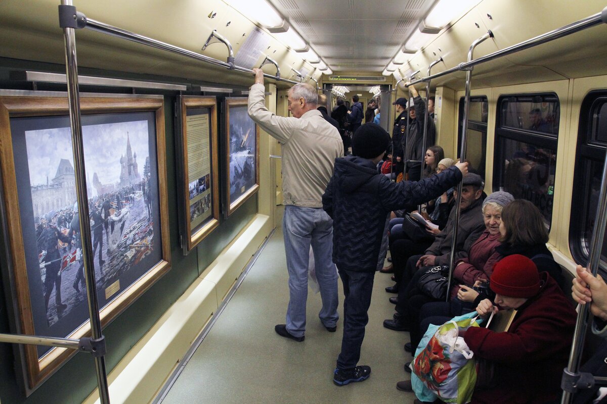 24 апреля на станции "Партизанская" состоялся торжественный пуск поезда "Акварель" с новой экспозицией "Летописцы ратной славы" из собрания Студии военных художников имени Грекова.