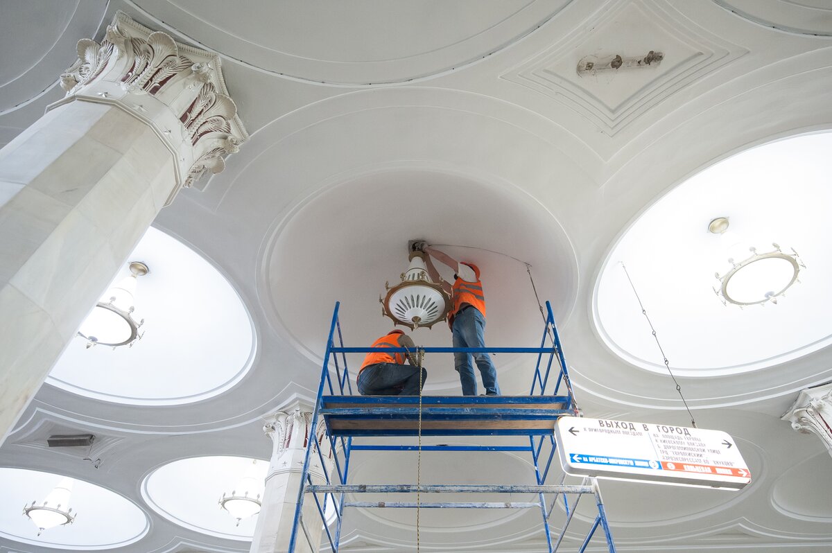 Реставраторам осталось закончить облицовку путевых стен и восстановить часть потолочных люстр. Чтобы реконструкция отвечала авторским чертежам и эскизам, архитекторы работали в архивах, поднимали библиографические источники.