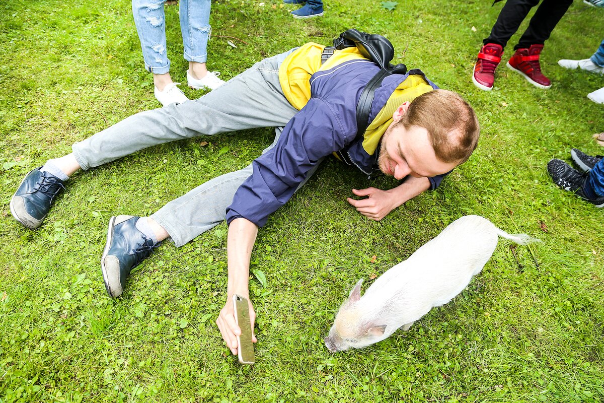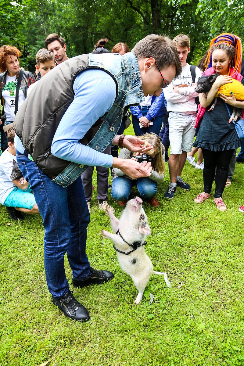 В Измайловском парке прошел фестиваль мини-пигов. Все желающие могли потискать и погладить животных, а их хозяева даже показали, как дрессируют мини-пигов.