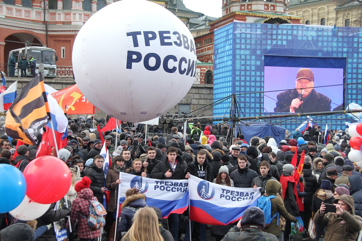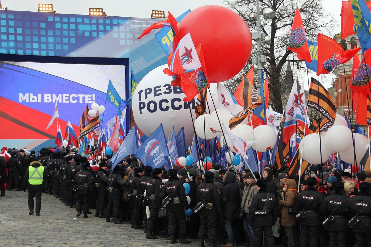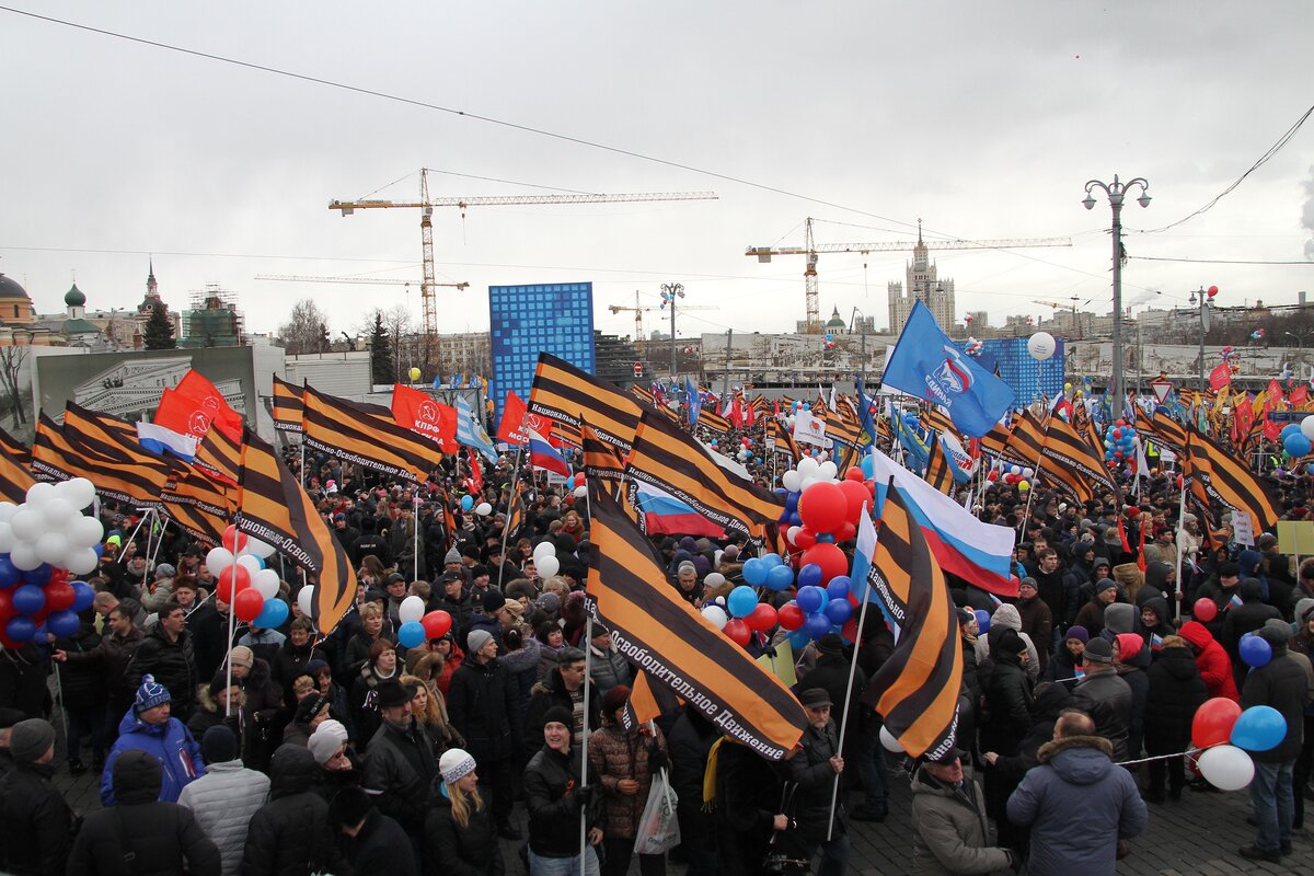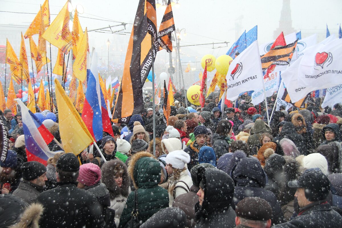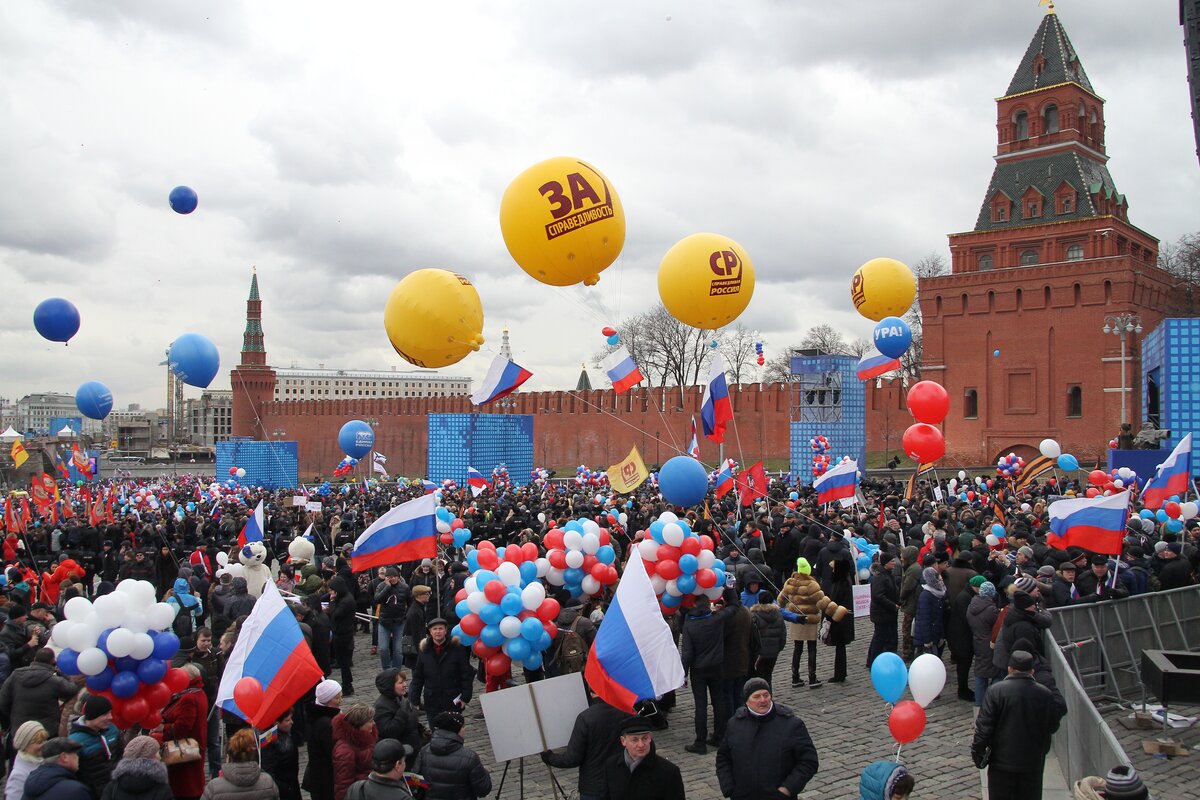 18 марта на Васильевском спуске прошел большой праздничный митинг-концерт "Мы вместе!", посвященный присоединению Крыма и Севастополя к России. На сцену вышли политики, артисты и звезды российской эстрады, а на больших экранах транслировали обращение главы государства. В мероприятии приняли участие около 100 тысяч человек.