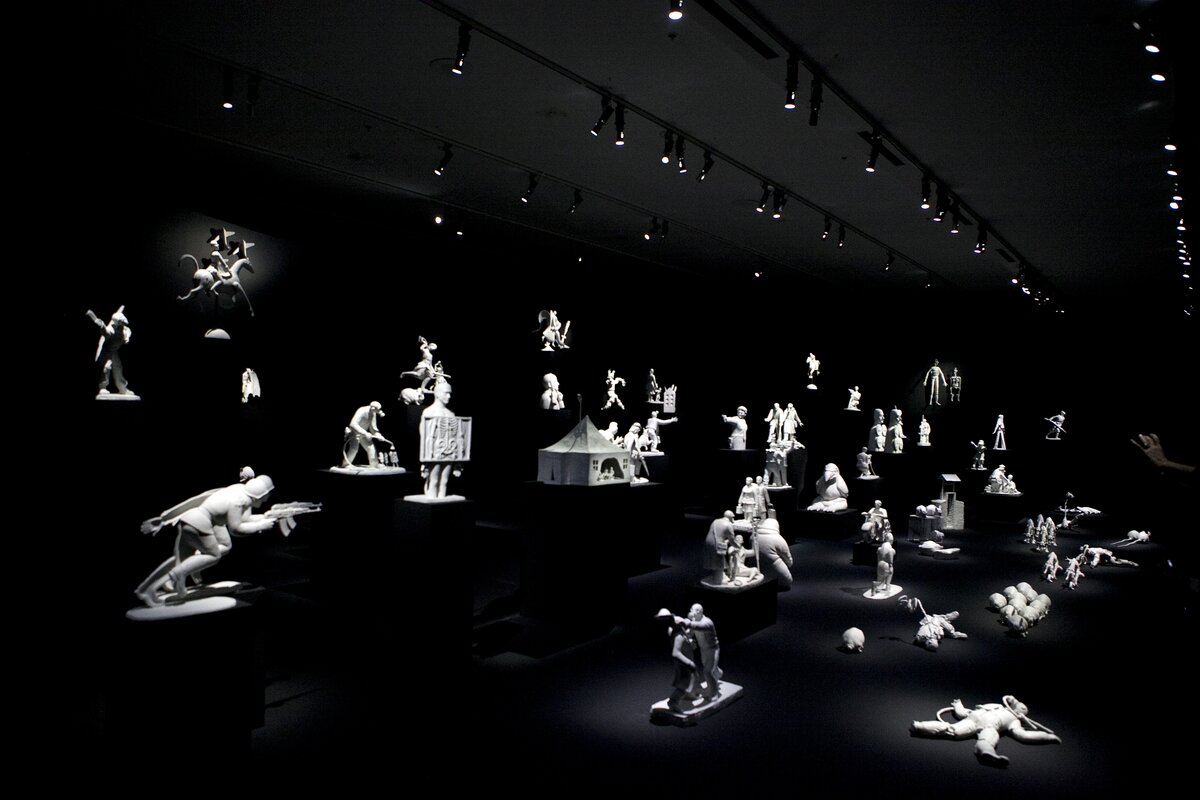 В Мультимедиа Арт Музее открылся проект "Время "Ч" художника Гриши Брускина. Он является самым высокооплачиваемым художником среди выходцев из России. Сейчас Гриша Брускин живет и работает преимущественно в Нью-Йорке. Идеи для творчества он берет из самых разных первоисточников - от старинной живописи до современных СМИ. В экспозиции Брускин представил свою версию понятия "враг".