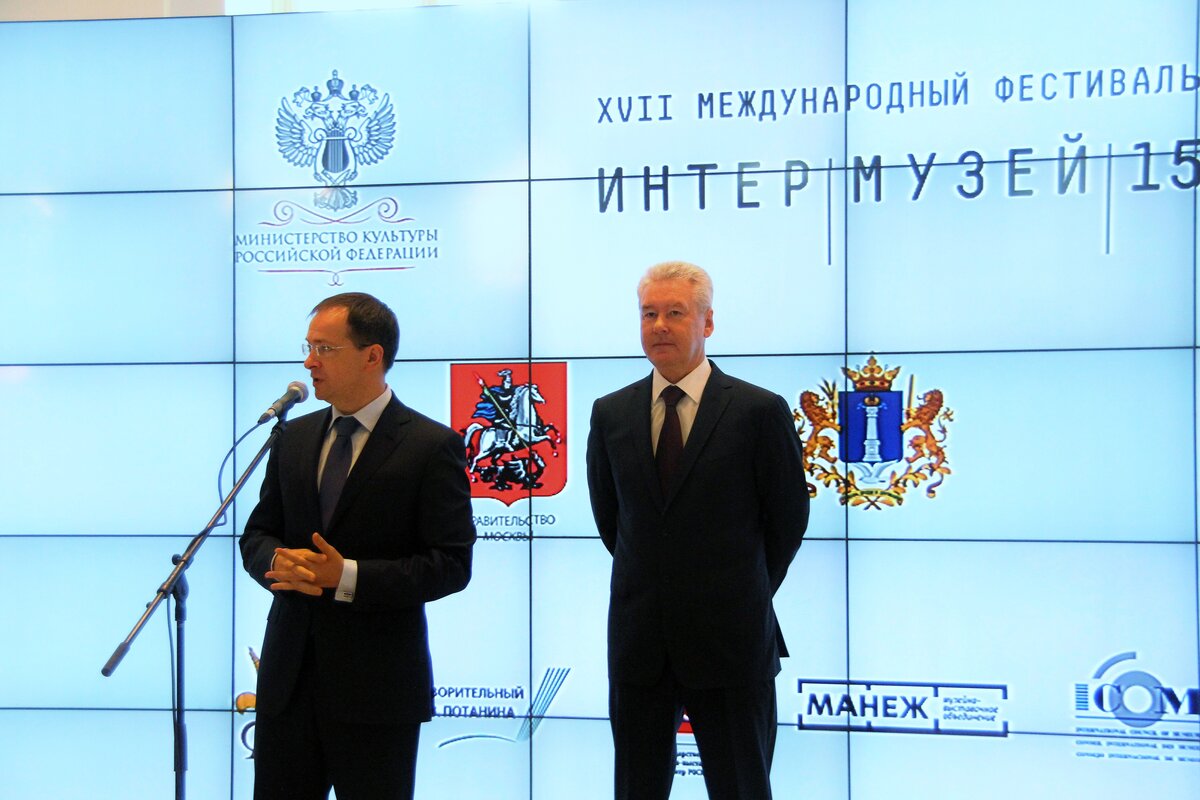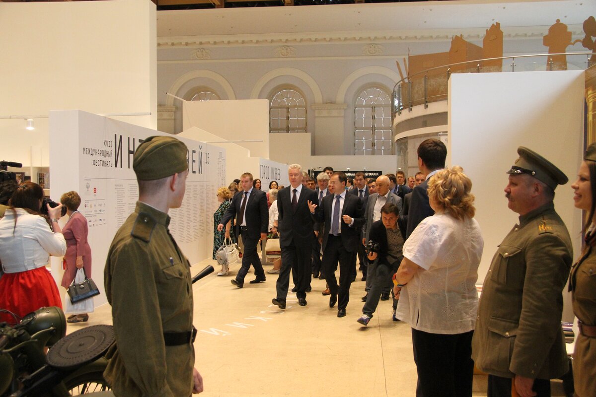 Сергей Собянин и министр культуры России Владимир Мединский открыли фестиваль "Интермузей-2015" в центральном выставочном зале "Манеж". Фестиваль продлится до 15 июня. Он проводится с 1999 года с целью профессионального развития музейного дела в России, поддержания традиций, новых тенденций и технологий в работе современных музеев.